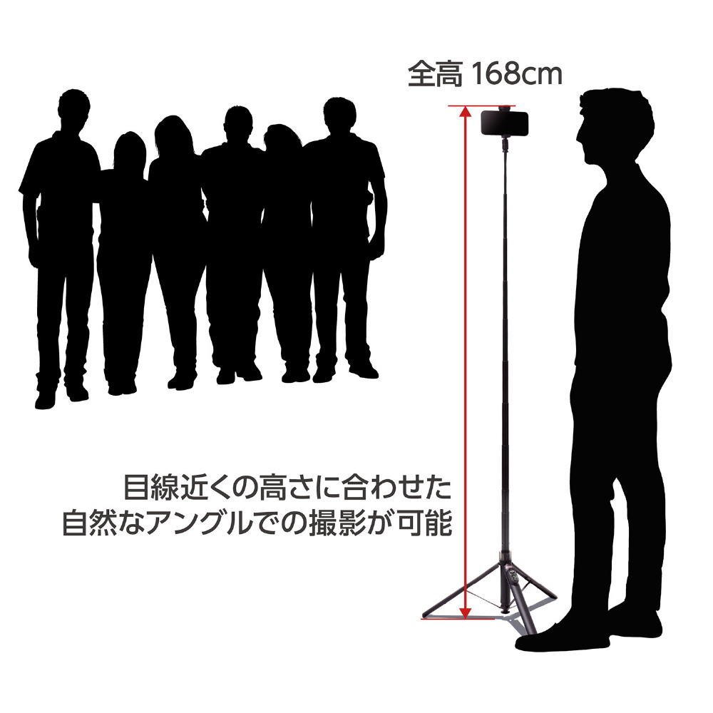 最大168cmになり大人目線の高さで撮影可能ながらも、持ち運びしやすいコンパクトサイズに収納できます。