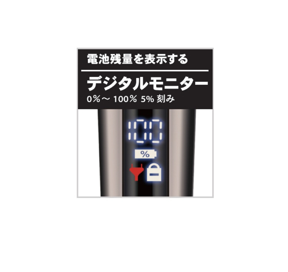 ■液晶モニター付で、わかりやすい充電残量デジタル表示。(%表示)