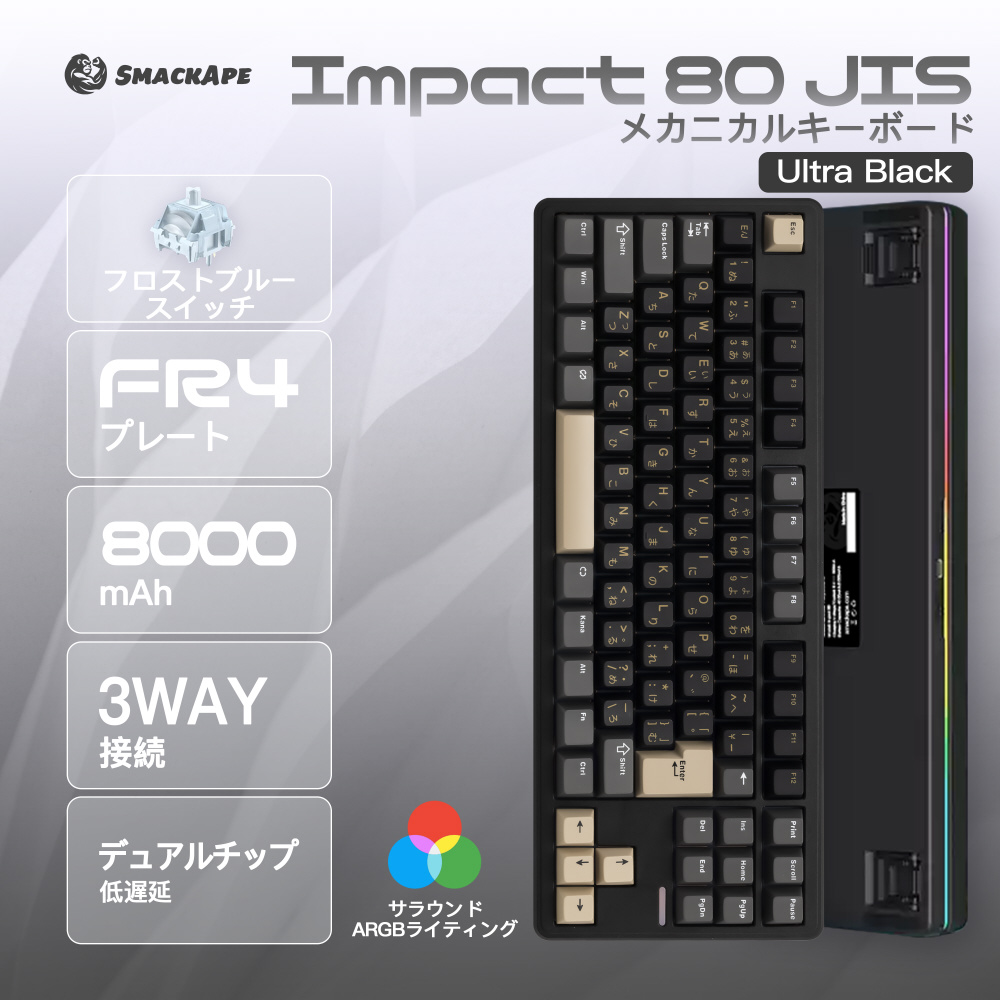新興メーカー「SmackApe」のコストパフォーマンスに優れた80%レイアウトのメカニカルキーボード「Impact 80」に、日本語配列モデルが新たにラインナップに加わりました。