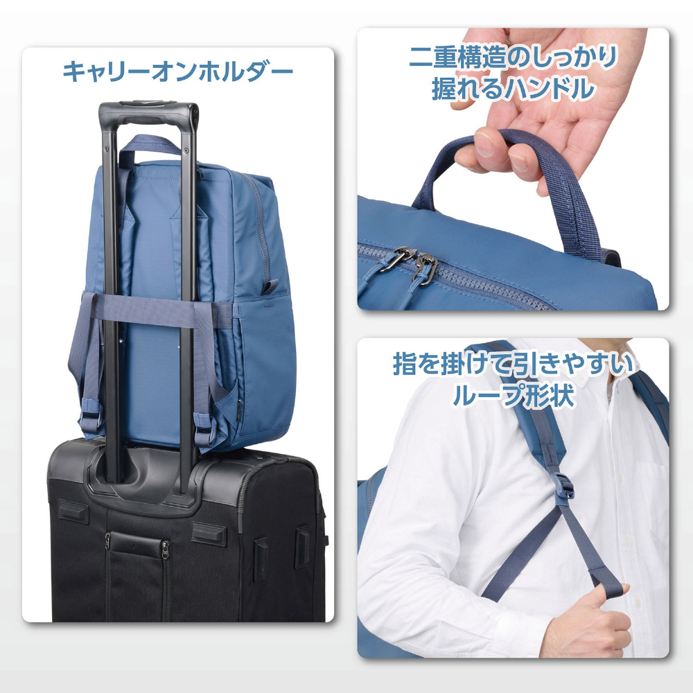 水に強い素材やキャリーオン機能など実用性も充実し、ケースを外せば普段使いのバックパックとして活躍。