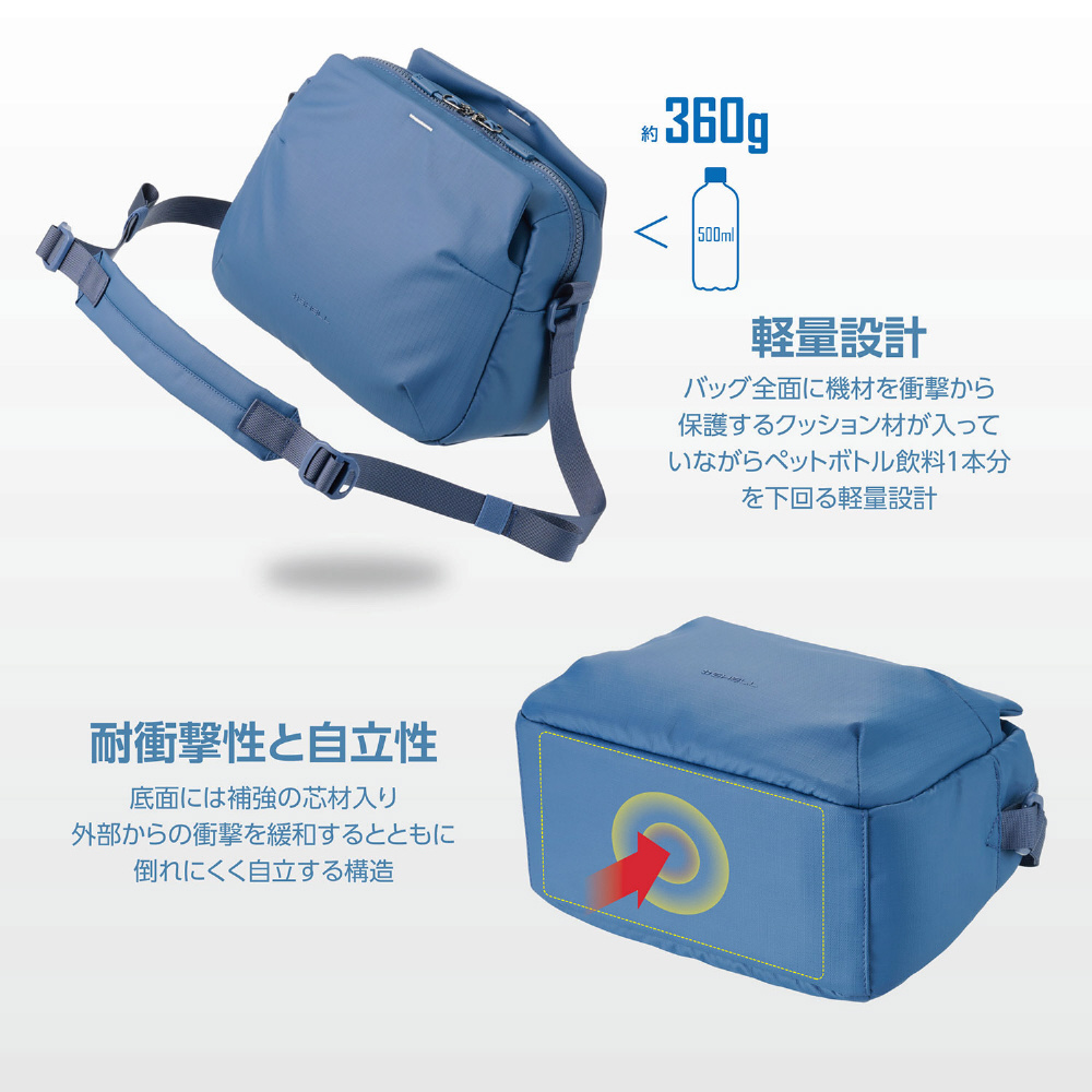 端正なフォルムに高い機能性と収納力を備えたカメラショルダーバッグ