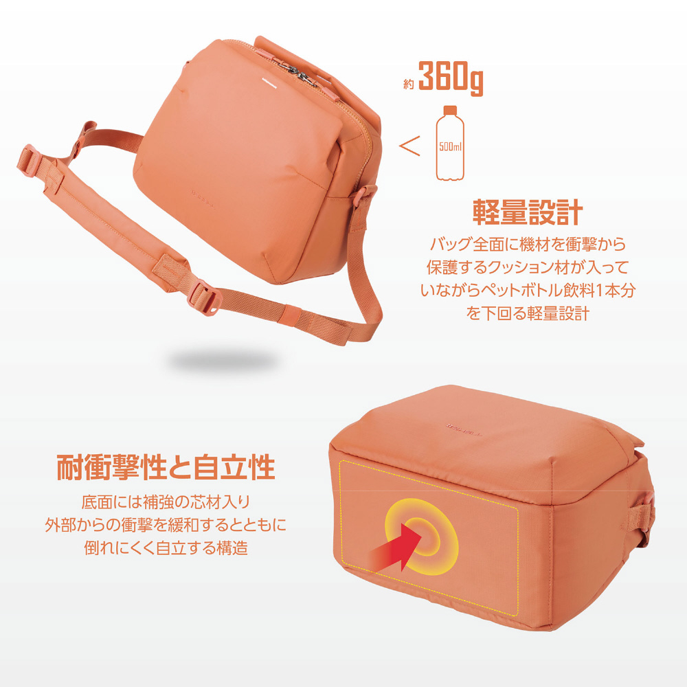 端正なフォルムに高い機能性と収納力を備えたカメラショルダーバッグ