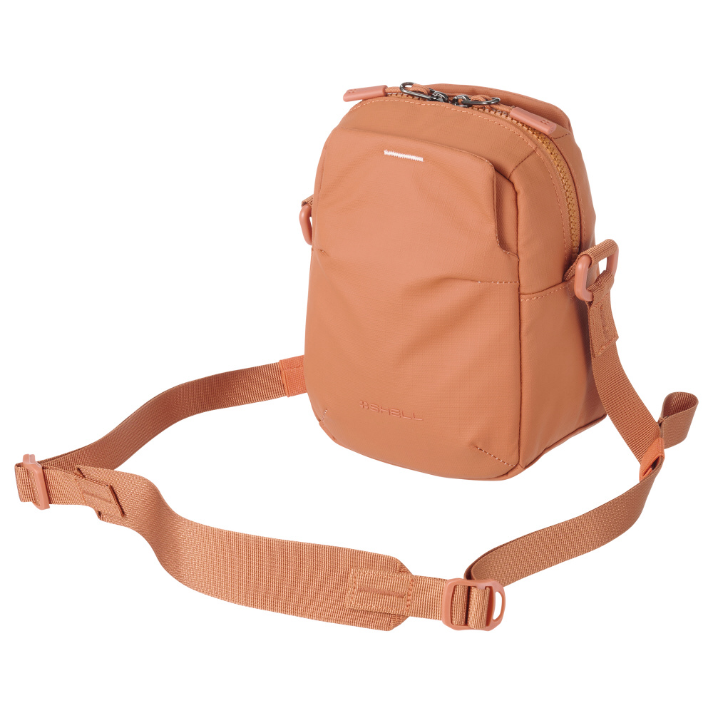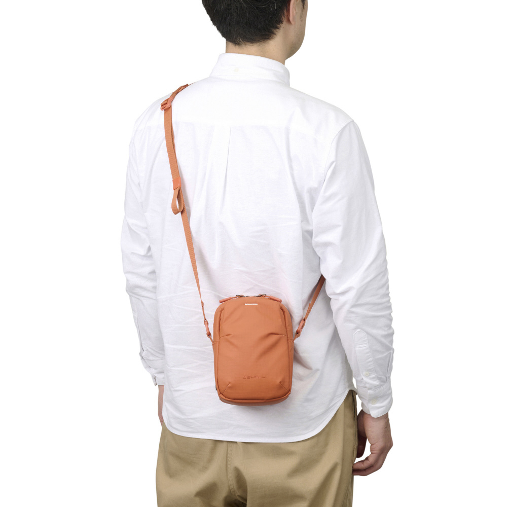 「ショルダーポーチ」は小型ミラーレス一眼やスマートフォンなどを軽快に持ち運べるコンパクトモデルです。前面と背面には普段使いにも便利な大型ポケットを装備。