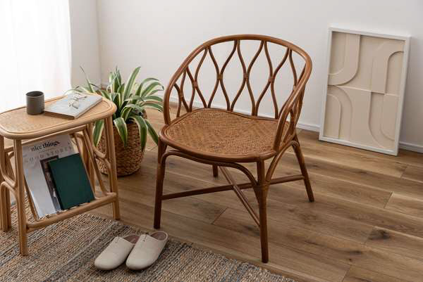 ■軽快なフォルムでありながら、ラタンの質感がほどよい温もりをプラスしモダンな空間にもナチュラルな空気感をもたらします。