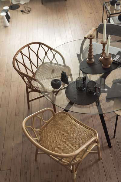 ■軽快なフォルムでありながら、ラタンの質感がほどよい温もりをプラスしモダンな空間にもナチュラルな空気感をもたらします。