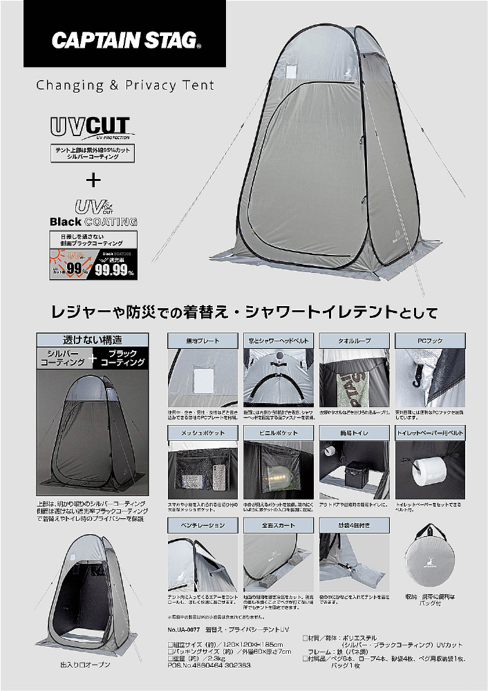 レジャーや防災での着替え、シャワー・トイレテントとしてご利用いただけます