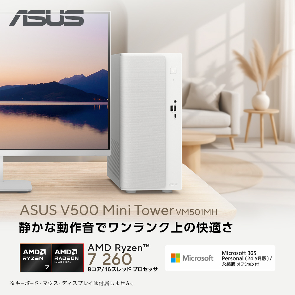 VM501MH-0R7260321TBO デスクトップパソコン V500 Mini Tower ホワイト [モニター無し /Windows11 Home /AMD Ryzen7 /メモリ:32GB /SSD:1TB /Office HomeandBusiness /2026年2月モデル]