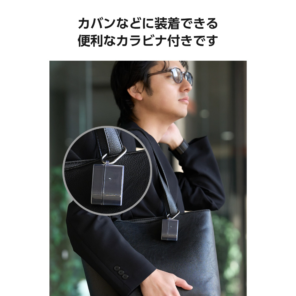 持ち運びしやすく、腰やかばんに装着できるカラビナ付き。ケース側面に取り付けることができます。