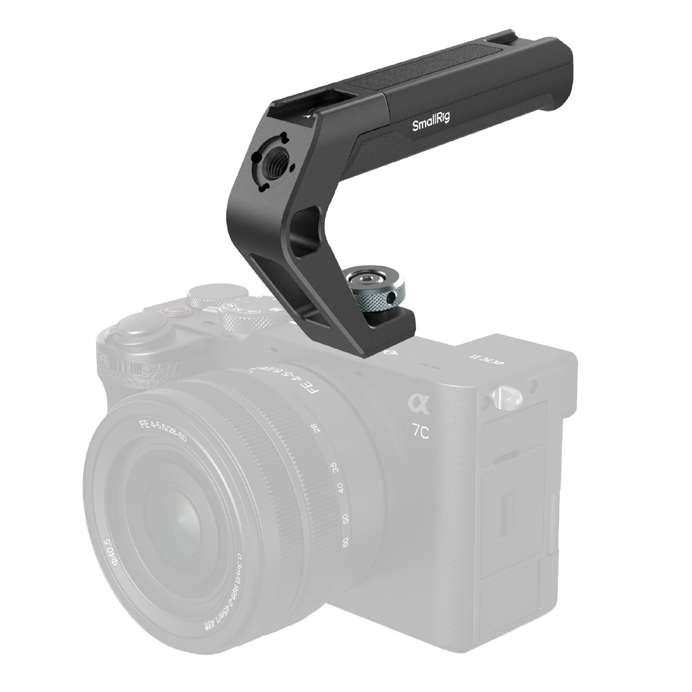 SmallRigトップハンドル5976は、ハンドリングと撮影時の機動性を向上させるために設計された軽量ハンドルです。コールドシューマウントを介してカメラのホットシューに直接取り付け、付属の六角レンチでしっかりと固定します。重量はわずか113g(4オンス)で、人間工学に基づいた流線型のデザインが、抜群の快適性と操作性を実現します。ハンドルは温かみのある自然な感触で、寒冷環境でも快適なグリップを実現します。