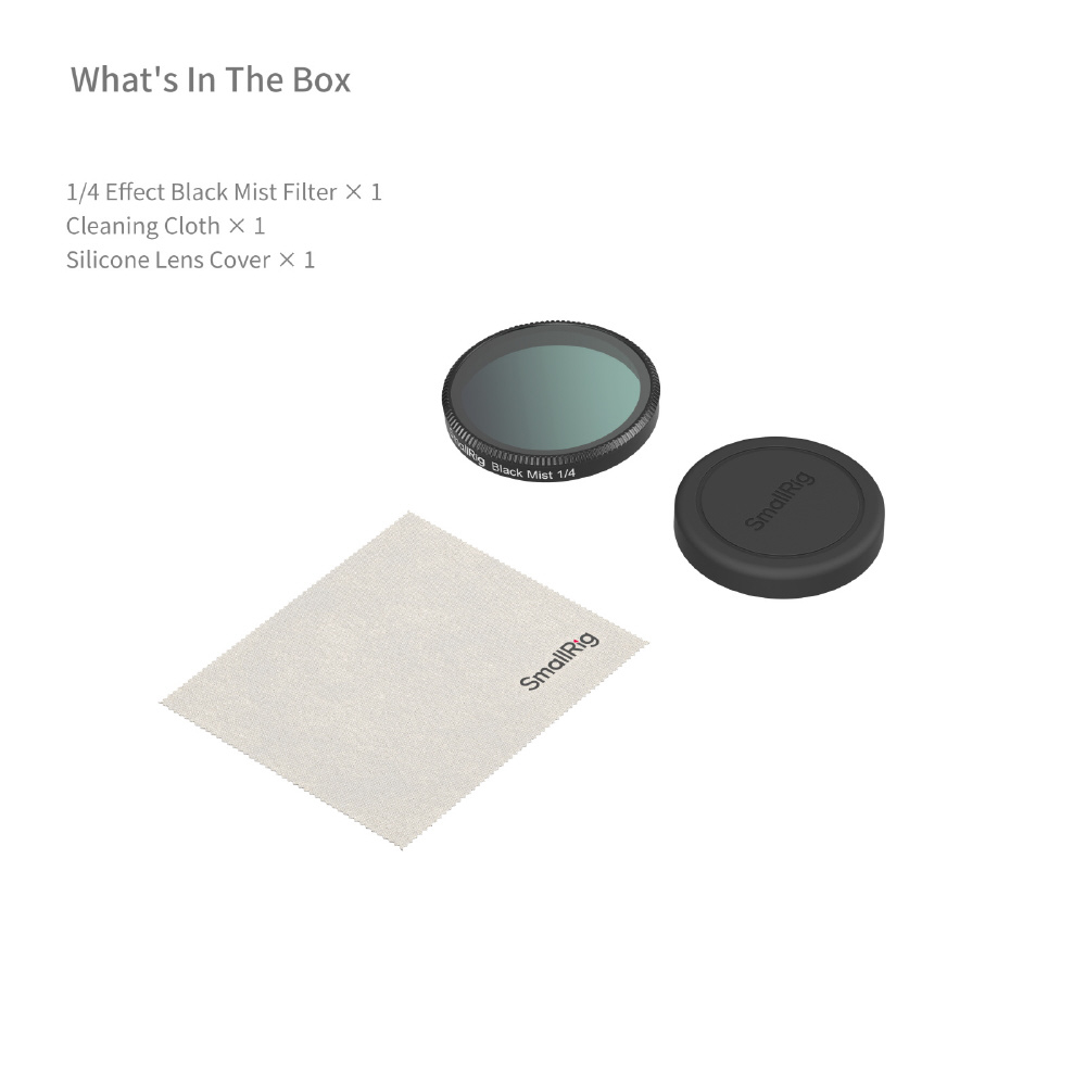 SmallRig 1/4インチ エフェクト ブラックミストフィルター(DJI Osmo Action 6用、6086)は、DJI Osmo Action 6専用に設計されています。高品質のレインボー高アルミナガラスを採用したこのフィルターは、優れた耐久性、耐衝撃性、耐摩耗性を備えています。迷光を効果的に除去し、常にシャープで高品質な映像を実現します。パッケージには、1/4インチ ブラックミストフィルター、シリコンレンズカバー、クリーニングクロスが付属