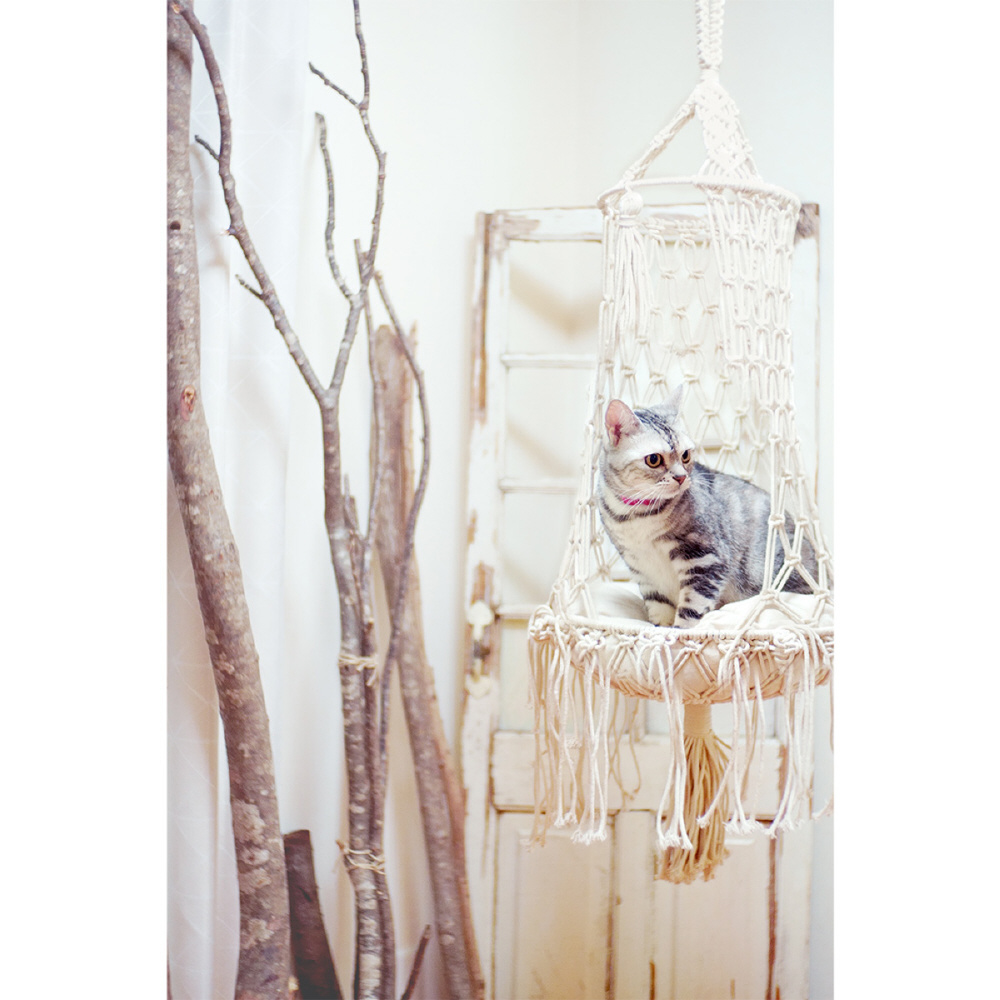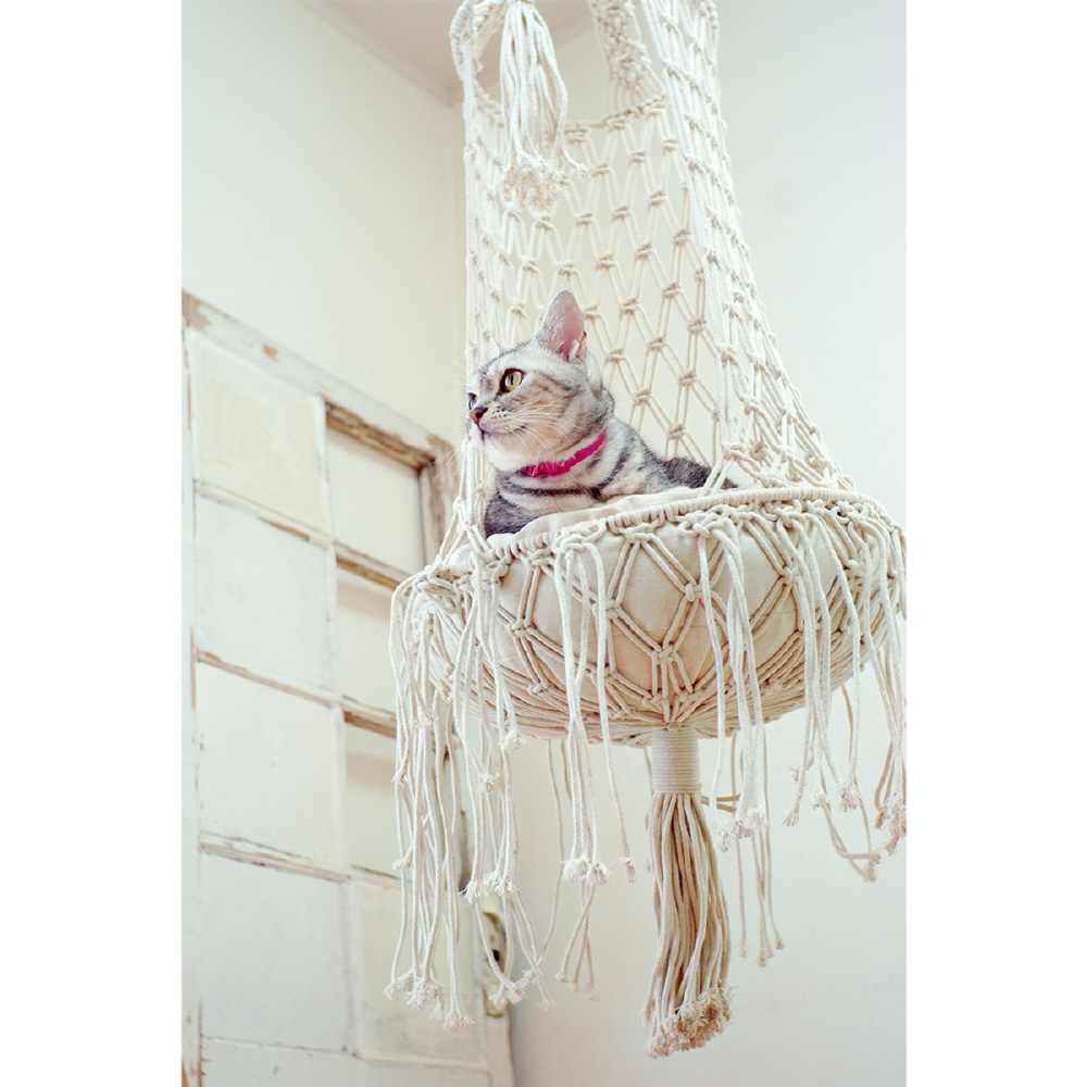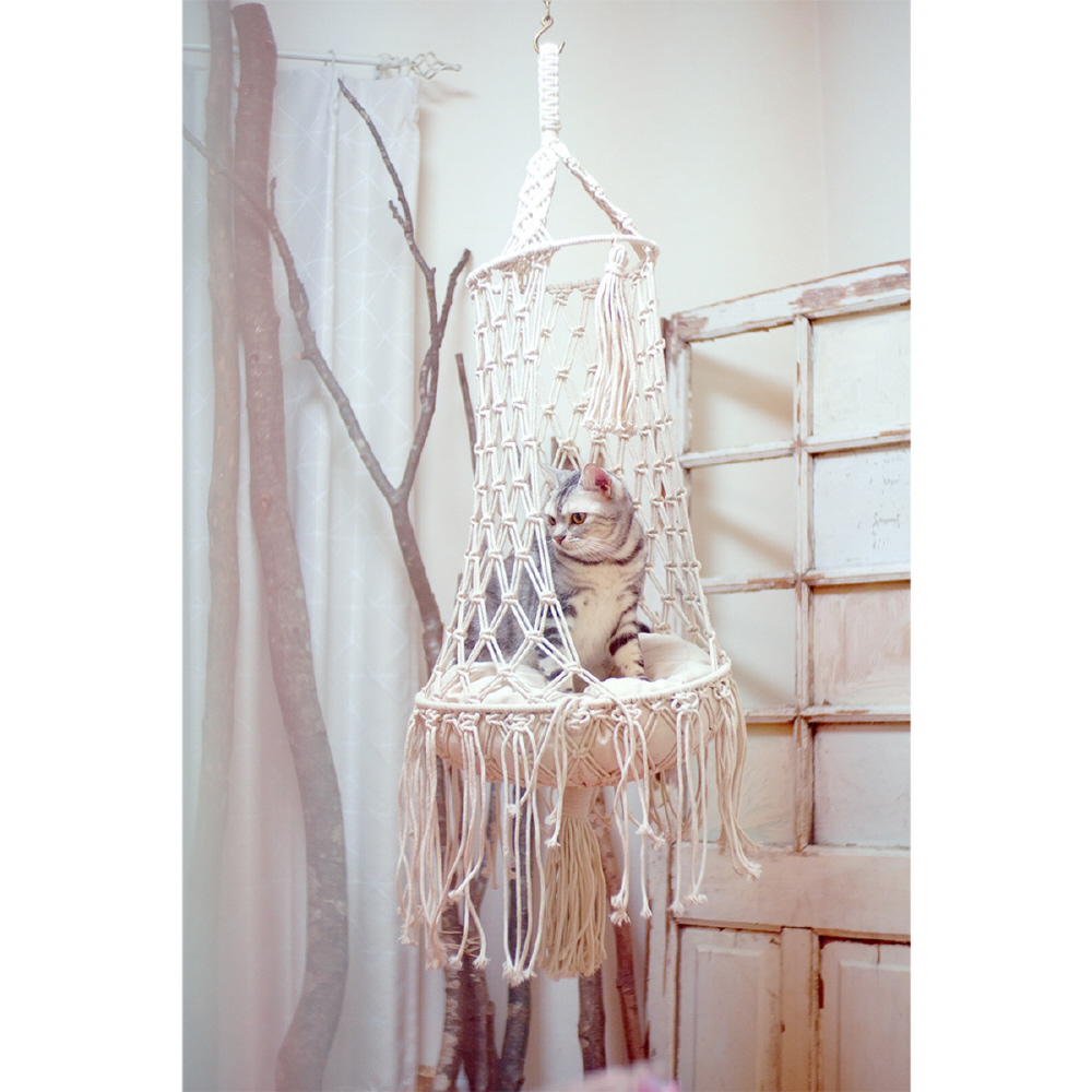 ●マクラメ編みで作られた美しいキャットハンギングベッドです。
