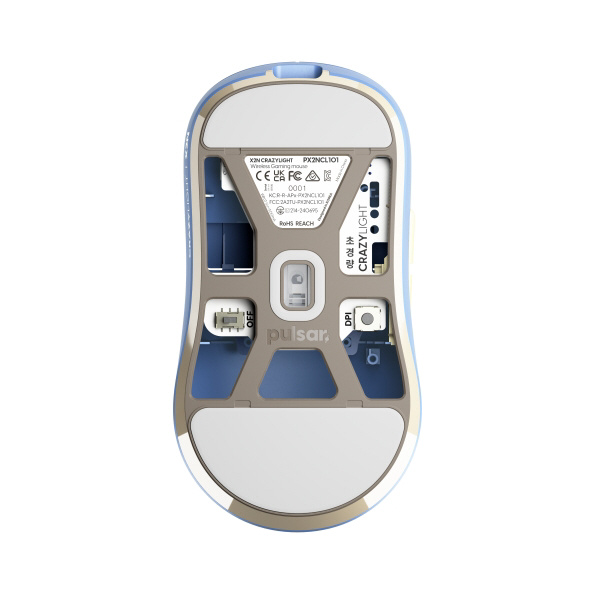 X2N CrazyLightは、高いハンプと細いウエストを特徴とする新しい左右対称シェイプを採用しています。手に収めた瞬間、持ち上がったリアハンプが手のひらにしっかりフィットし、クローグリップでは強力なサポートと「ロックされた」ような安定感を提供します。細く絞られたウエストは指の配置とコントロール性を高め、微細な操作や素早い反応をより正確に行えるよう設計されています。リラックスクローの場合も、バランスの取れた接触面と手の緊張を抑える形状により、長時間の使用でも快適さを維持します。自信を持って操作できる安定性と、競技レベルの精密さを追求したデザインです。