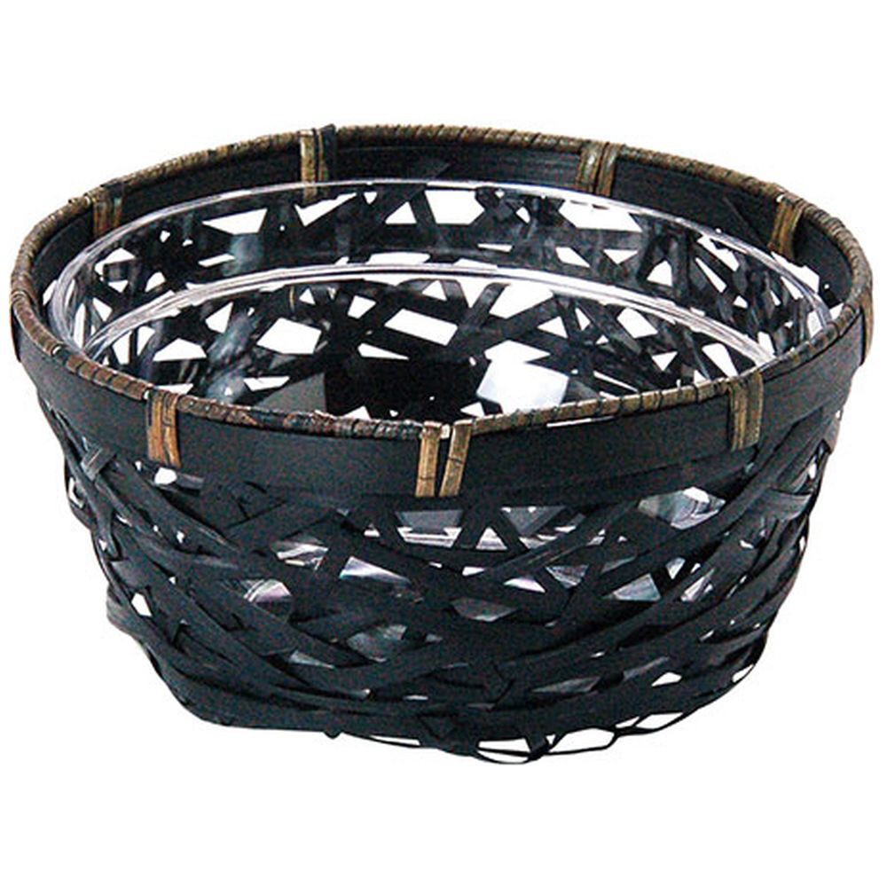 ■用美 業務用 やたら編み篭 アクリルボウル付 黒竹 yamaco32488