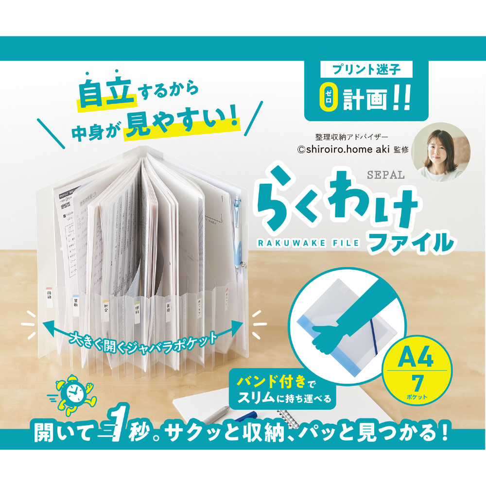 整理収納アドバイザー1級、Instagramフォロワー33万人超(2025年12月時点)、のshiroiro.home akiさん監修。プリント整理に手間をとらず、目の前のことに集中できるようにという想いから生まれた「らくわけファイル」!