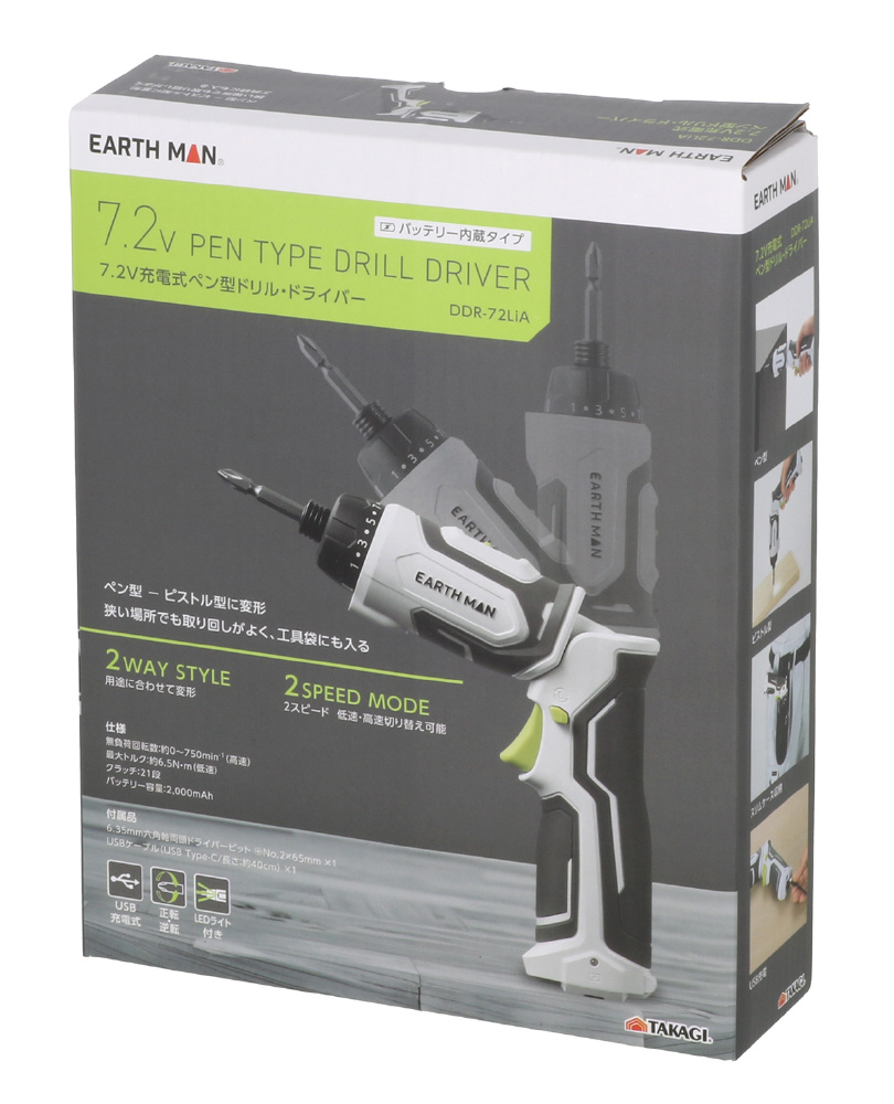 ●2WAY STYLEでペン型-ピストル型に変形 ●コンパクトタイプで狭い場所でも取り回しがよく、工具袋にも入る ●2SPEED MODEで低速・高速に切り替え可能 ●LED LIGHTでねじの周りを明るく照らし打ちやすい