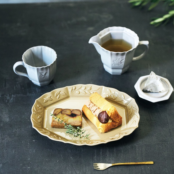 クラシカルなフォルムにオリーブのレリーフが美しい上品なポット。
