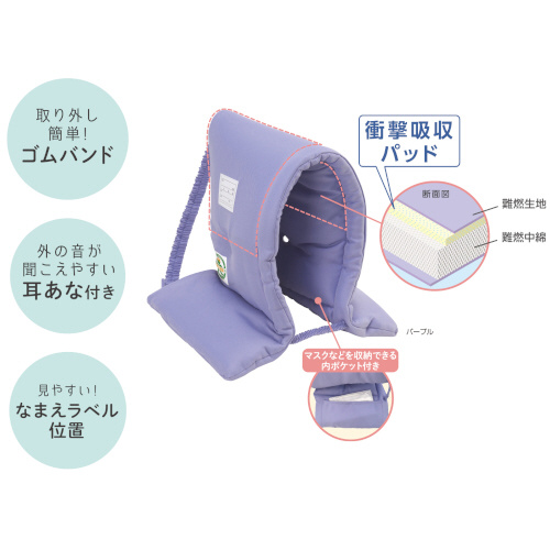 防災ずきん 衝撃吸収パッド入り パープル