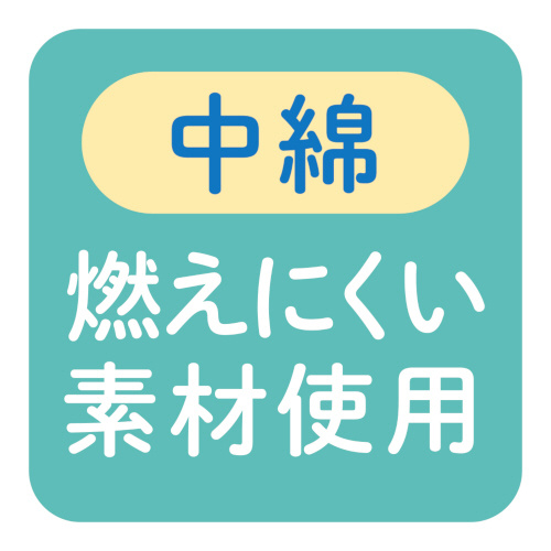 ・生地は難燃加工繊維使用。中綿は燃えにくい素材を使用しています。