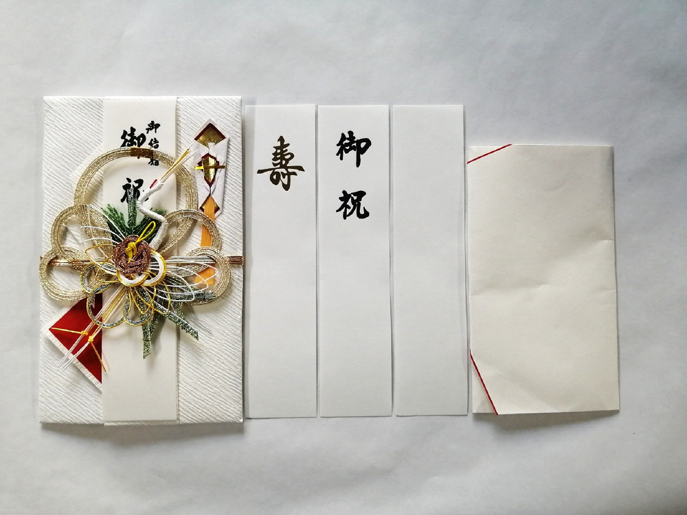 高額を包む、大金サイズ 鶴飾り。短冊4枚入り(御結婚御祝・御祝・寿・白無地)。中袋付き。