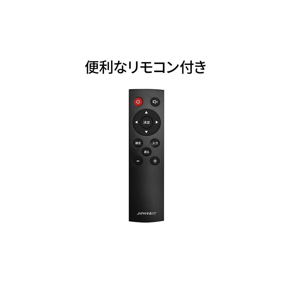 ■便利なリモコンを同梱。USBメモリ再生、メニュー操作、音量調整や入力切替などの操作を行えます。