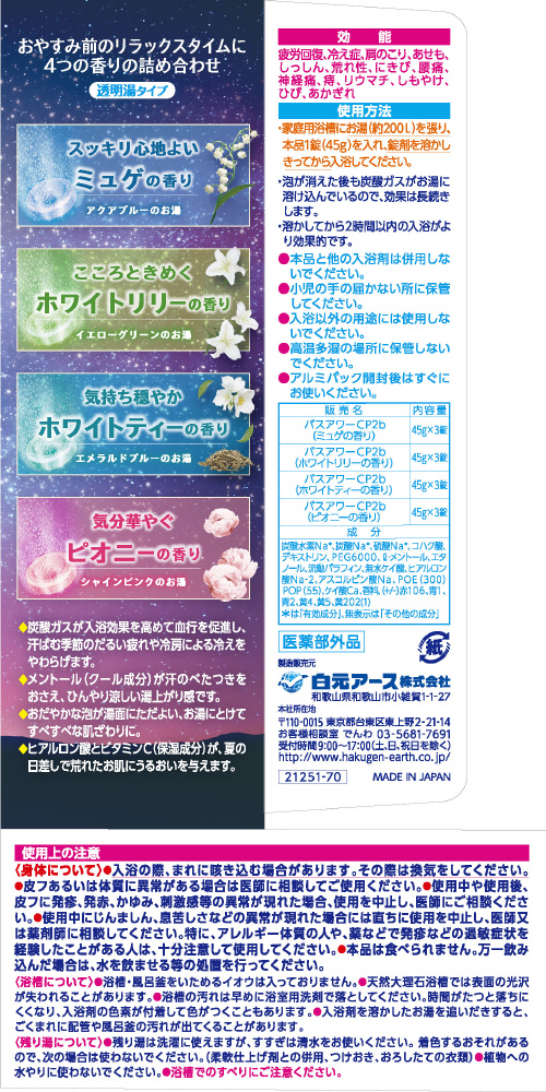 スキンケアタイプの炭酸ガスの錠剤薬用入浴剤。