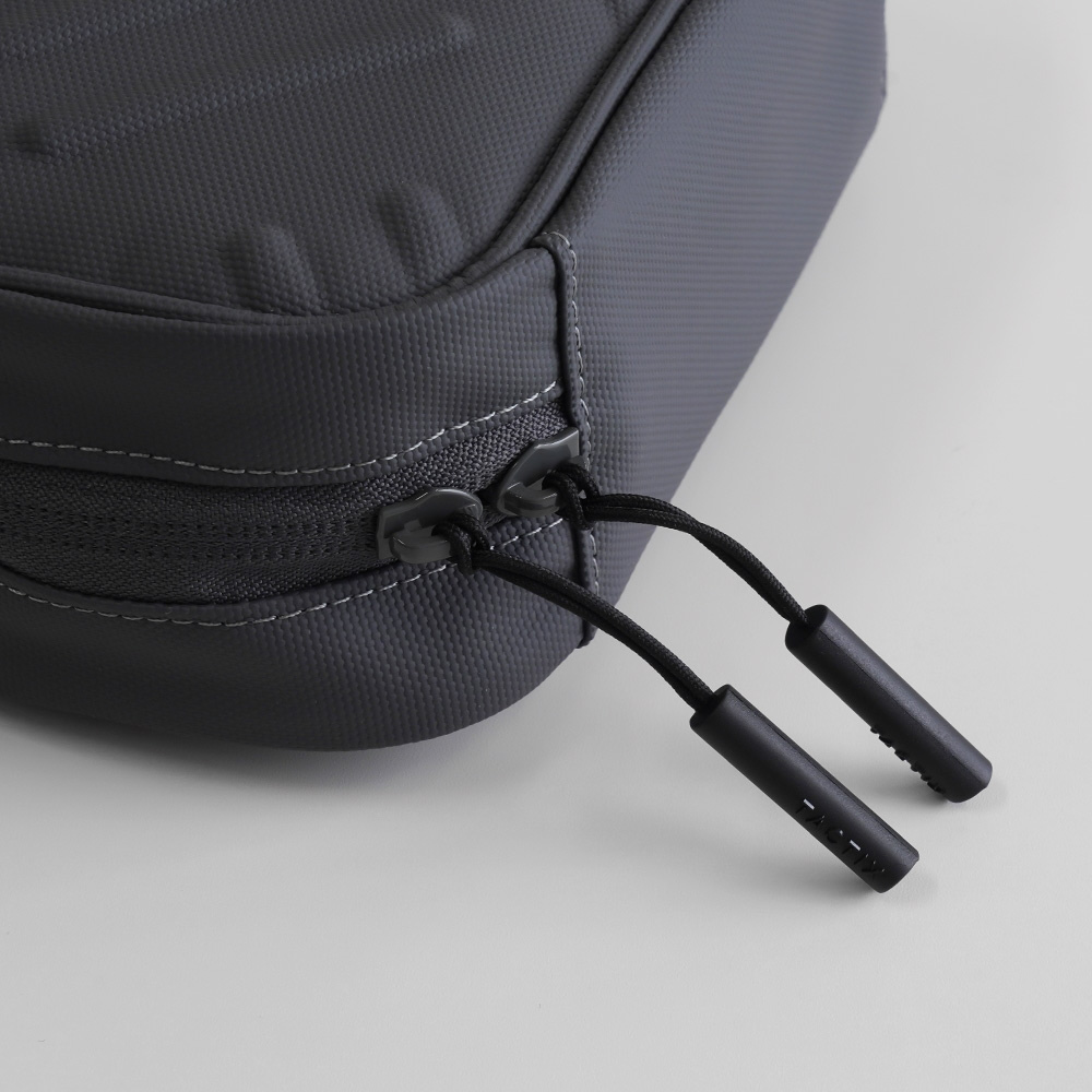左右に開閉しやすいダブルファスナーで、中身を取り出す際も大きく開いて中の物を探しやすい仕様です。