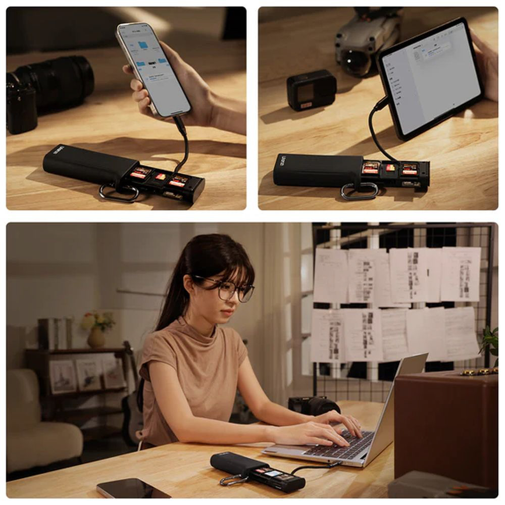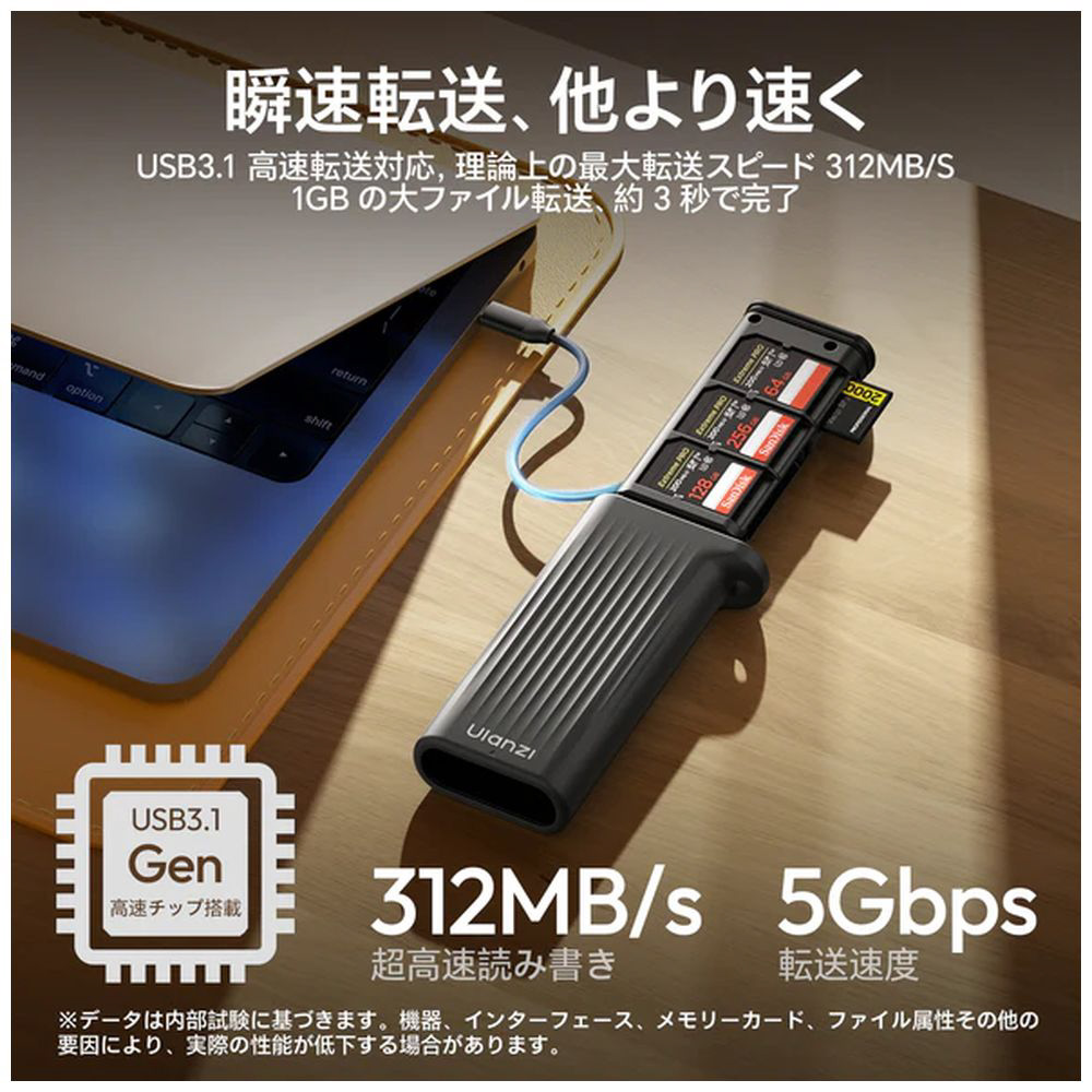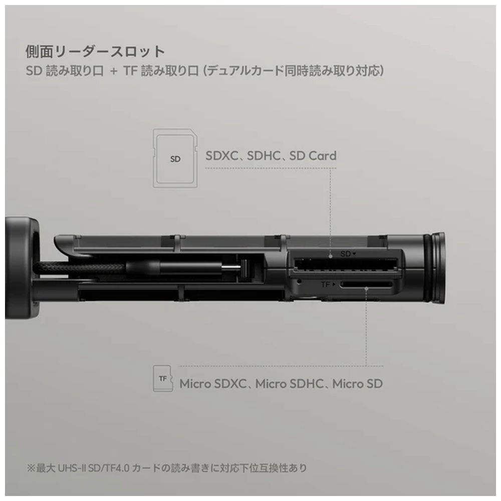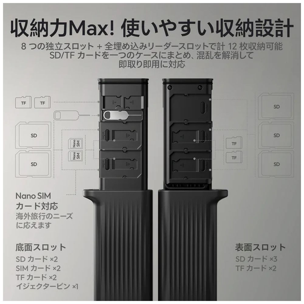 複数のSD/TFカードを安全に収納できるだけでなく、高速リーダーとしても使用可能