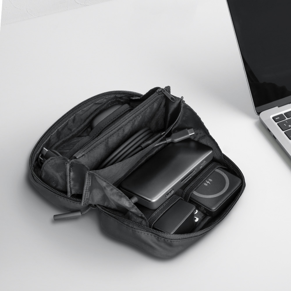 180度パノラマオープン設計のガジェットポーチ