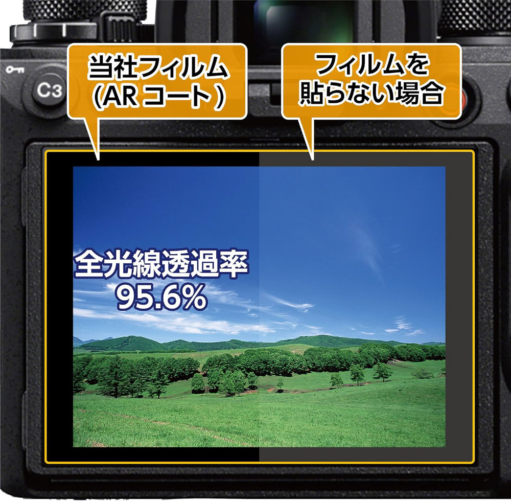 反射光を抑える反射防止(AR)コートを採用し、貼る前よりも高い視認性を実現。業界最高クラスの全光線透過率95.6%の透明度で、正確な色調と明暗の階調をストレートに映し出します。