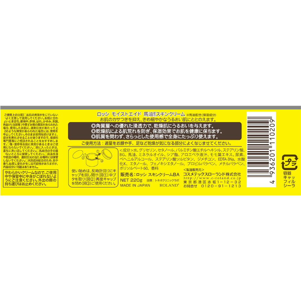 ロッシモイストエイド 馬油スキンクリーム 220g