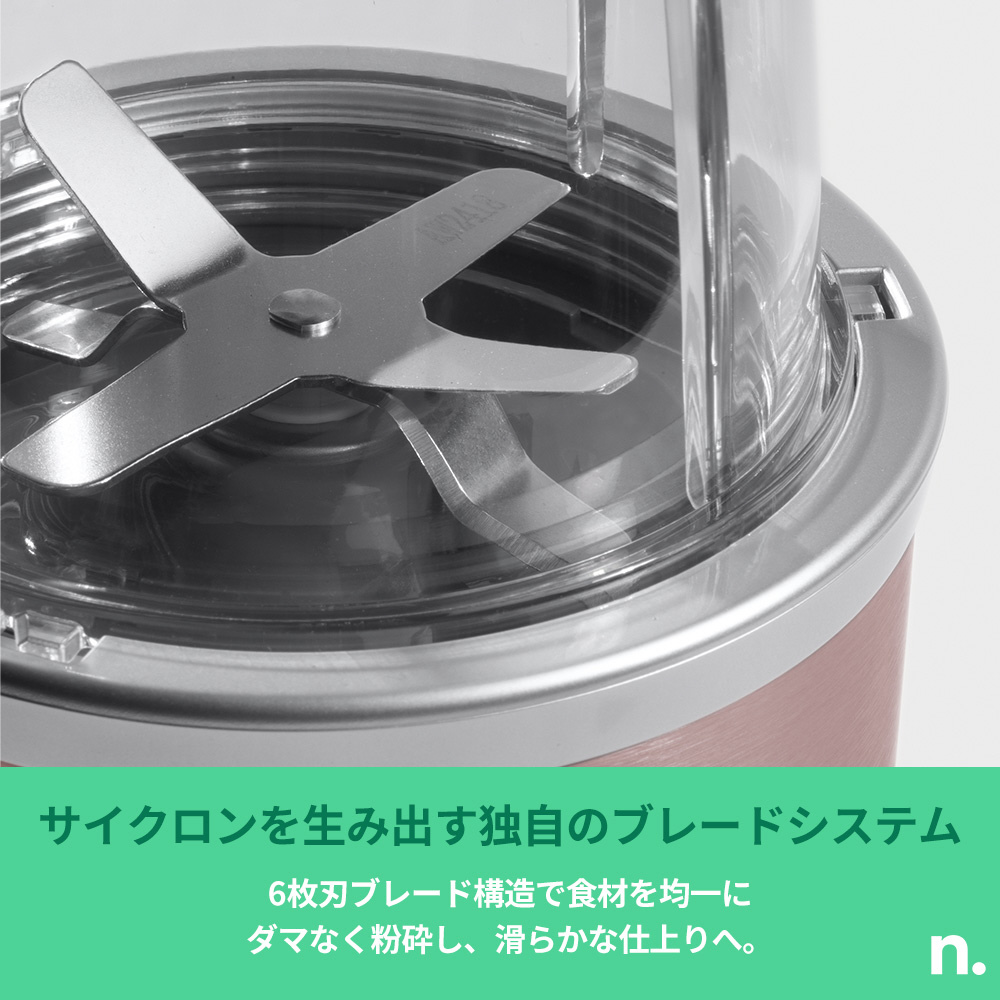 独自のサイクロンを生み出すブレードシステムが食材を均一にダマなく粉砕し、より滑らかな口当たりに。