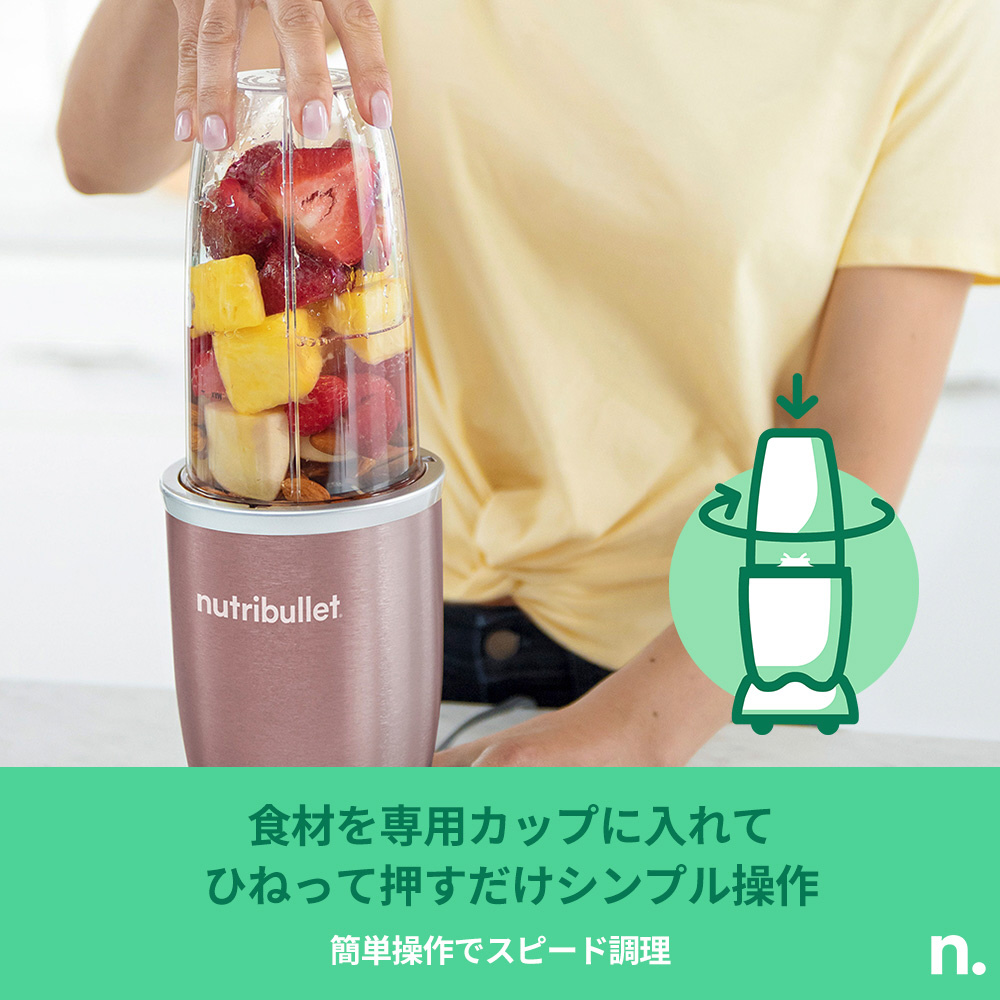900Wのハイパワー。氷もフルーツも一瞬でブレンド。 プロの仕上がりを日常に。nutribullet Proは、900Wモーターのパワーで素材の旨みを引き出す。 簡単操作で、驚くほどなめらかな仕上がりに。