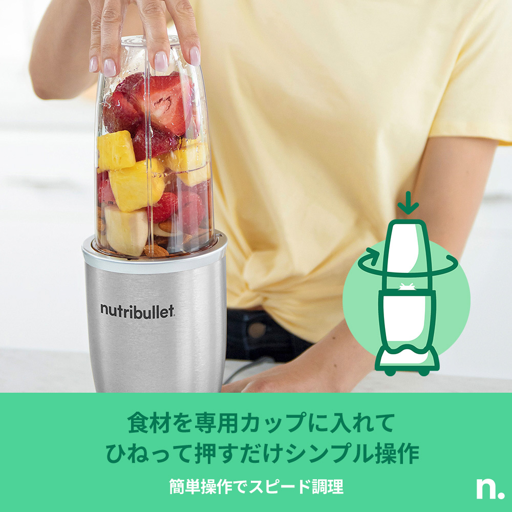 900Wのハイパワー。氷もフルーツも一瞬でブレンド。 プロの仕上がりを日常に。nutribullet Proは、900Wモーターのパワーで素材の旨みを引き出す。 簡単操作で、驚くほどなめらかな仕上がりに。