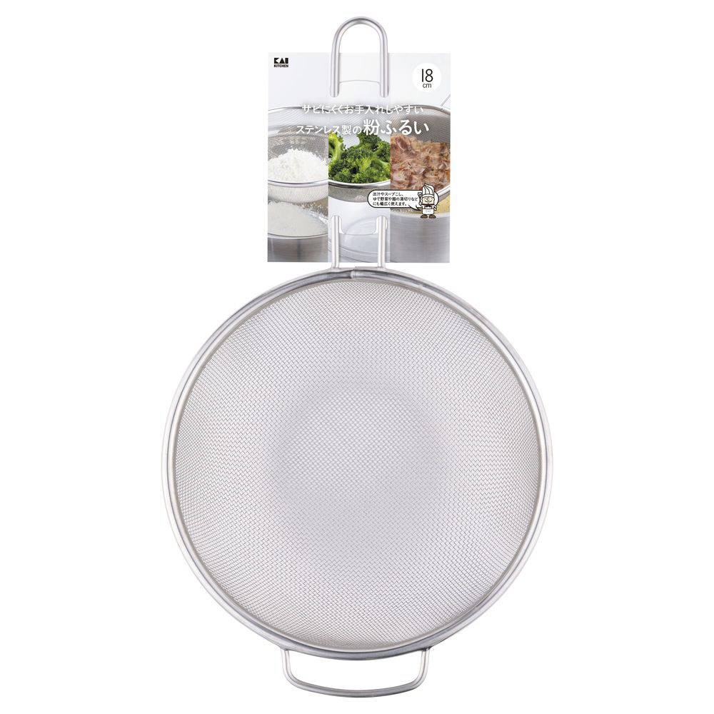 多量の粉もふるいやすいストレーナータイプの粉ふるい18cm。製菓はもちろん、料理にも大活躍。出汁やスープこし、ゆで野菜・麺の湯切りなどにも使用できます。フック付きでボウルにかけて使用も可能。ステンレス製でサビにくく、シンプルな構造なのでお手入れ簡単。食洗機可能なので、お手入れしやすく清潔にお使いいただけます。