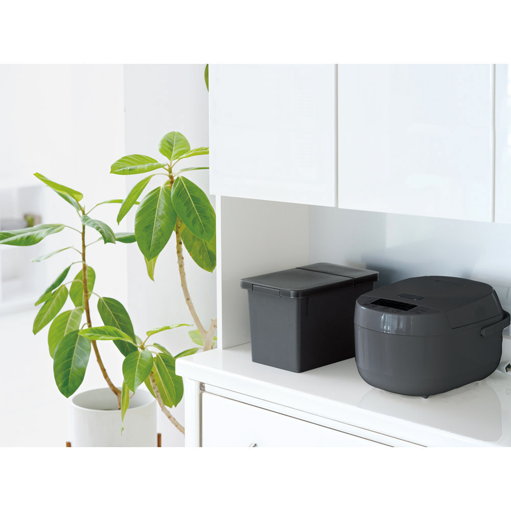 パッキンとロック構造で湿気や酸化を防ぐ米びつです。新鮮でおいしいご飯が味わえます。空間に馴染むナチュラルなデザイン。どんなインテリアにも馴染み、キッチンをスッキリと整えながら、使いやすさも兼ね備えたデザインです。冷蔵庫の野菜室やシステムキッチンの引き出しにも収まるサイズ感です。キャスター付きで楽に引き出せるため、棚に置いても楽に引き出すことができます。便利な計量カップ付き。無洗米も計れます。取っ手付きで使いやすいです。大きな開口部でお米がすくいやすい。フタが大きく開いてピッタリ止まるので、お米がすくいやすいです。分解可能で丸洗いできて清潔。パーツが簡単に分解でき、丸ごと洗えるので衛生的です。