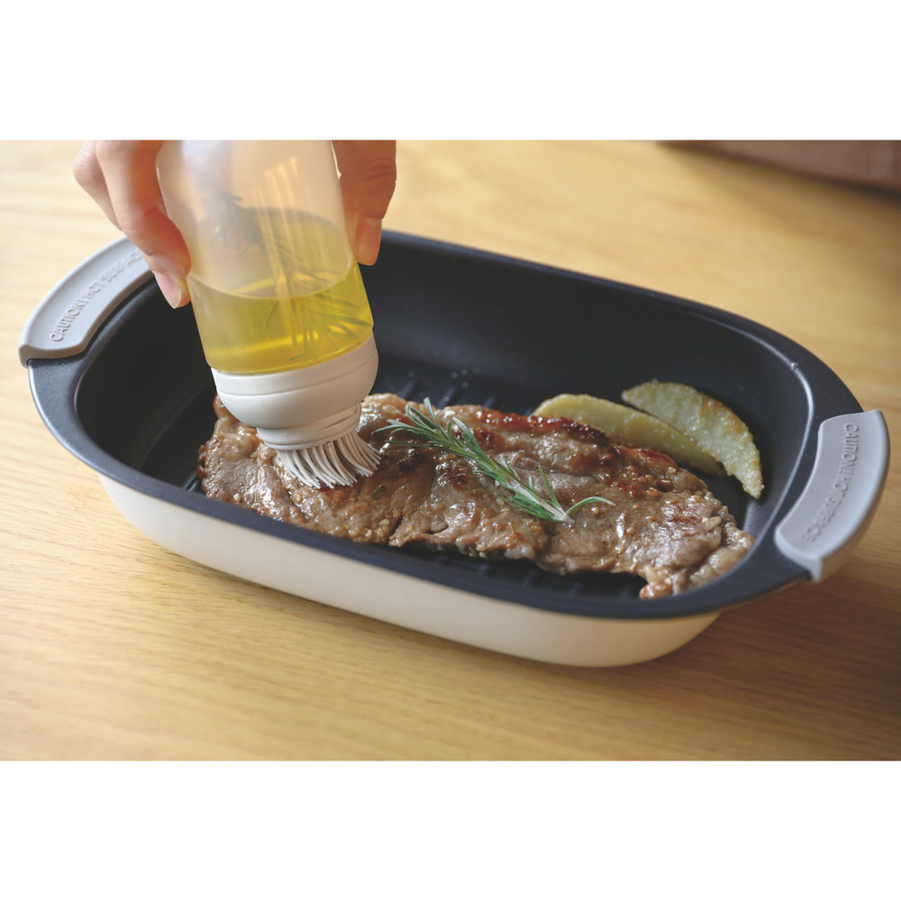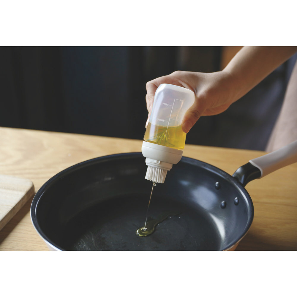 ブラシ付き注ぎ口なので、たこ焼き器など凹凸のある調理器具にも使いやすく、下準備がスムーズに進みます。