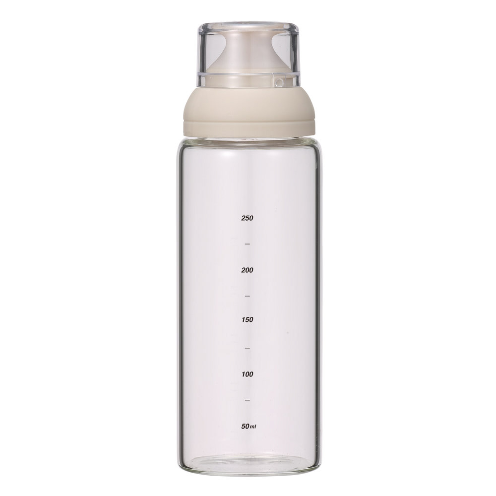 本体には目盛りが付いているので、オイルやお酢の分量を見ながら調整できます。