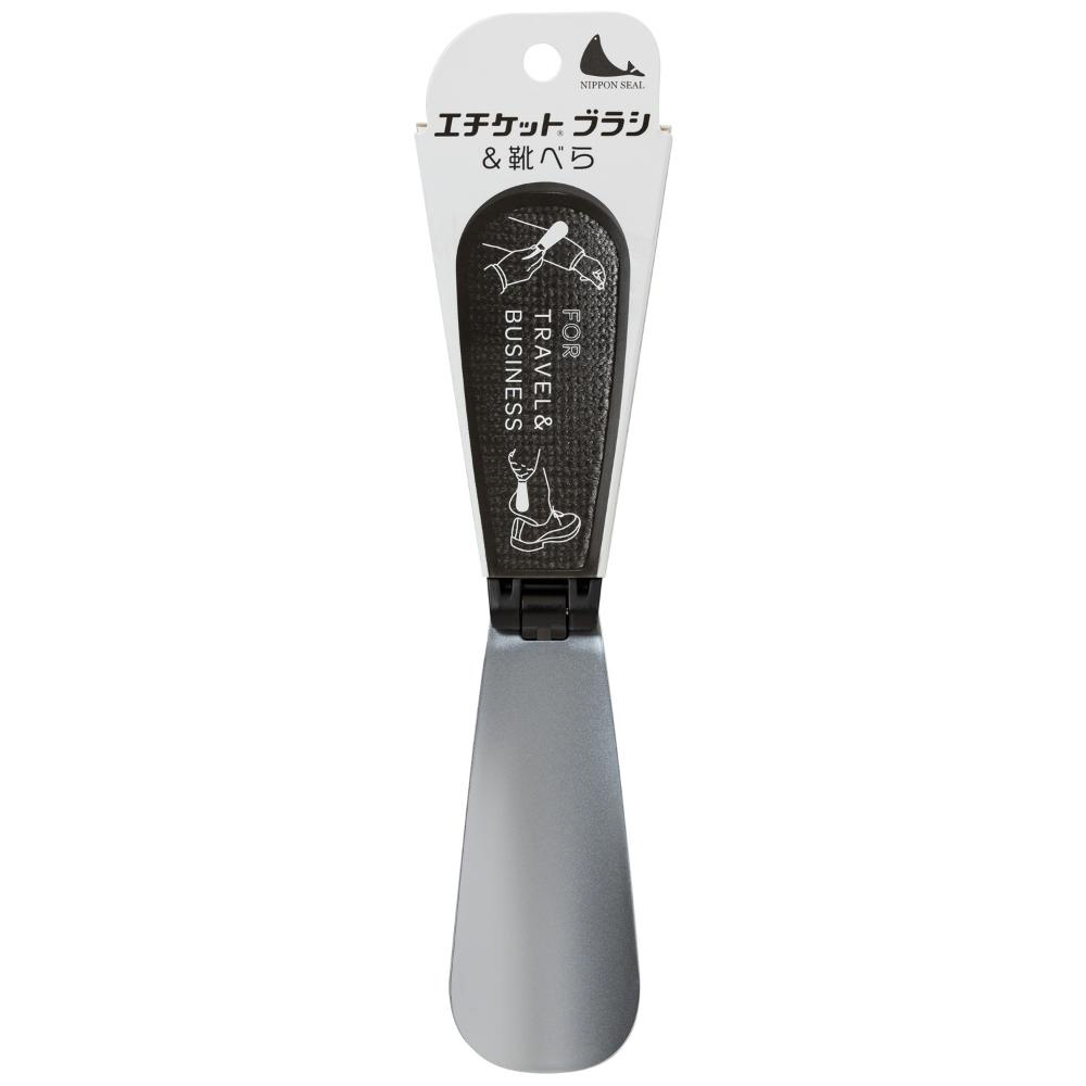 シンプルで高級感あるステンレス製の靴べら付きエチケットブラシです。