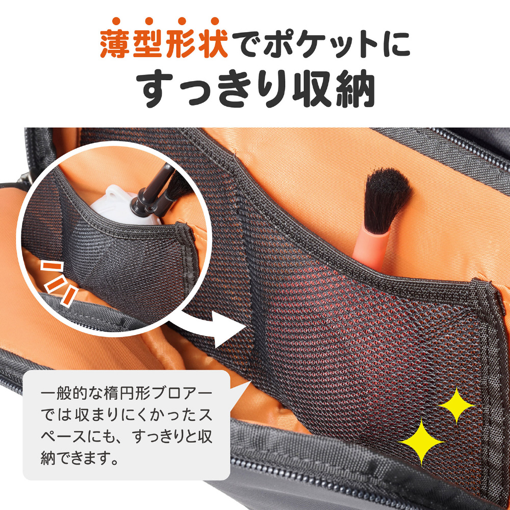 薄型形状でスマートに持ち運べるブラシ付き小型ブロアー