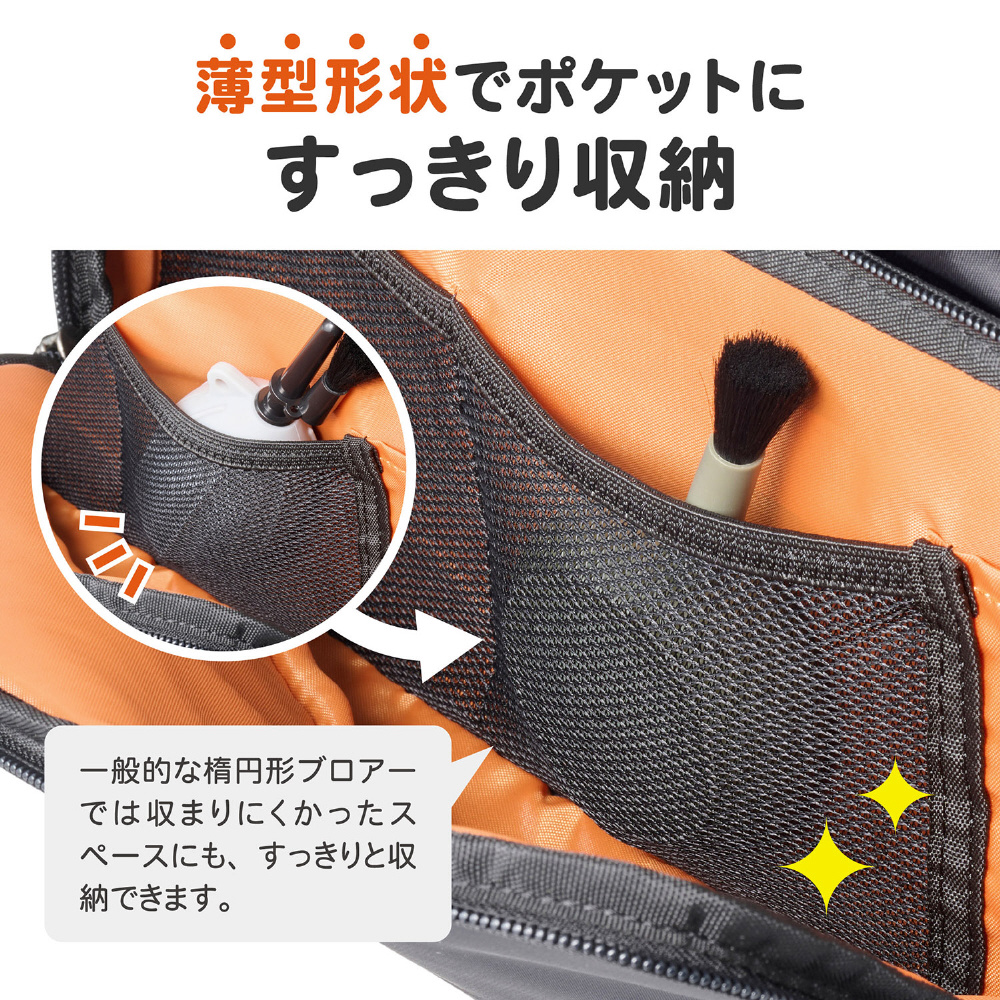 薄型形状でスマートに持ち運べるブラシ付き小型ブロアー