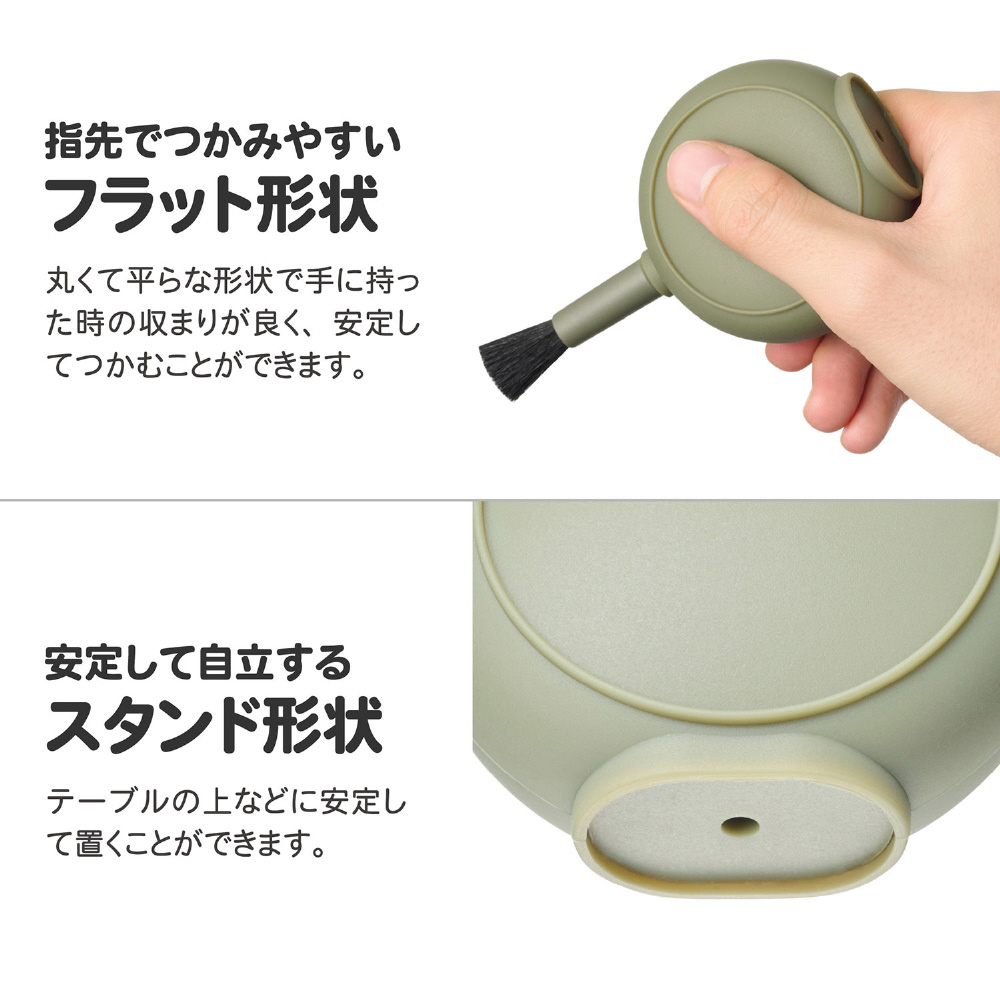 ブラシが付属しており、シーンに応じてブローとブラッシングを使い分けた清掃が行えます。限られたスペースを有効に活用できる、携帯性に優れたメンテナンスアイテムです。