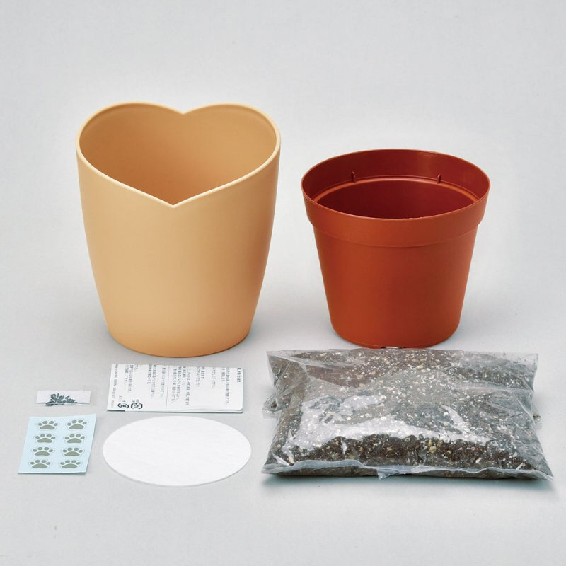 ●不朽の名作「吾輩は猫である」をイメージして、ゴロゴロとくつろぐ猫をデザインしました。●付属の肉球シールでポットをアレンジできます。●キャットニップ:別名「西洋マタタビ」といいマタタビに似た香りで猫の大好きなハーブ。猫と誘引する効果があり、近くに置いておくと猫が遊び始めます。※猫の個体差によります。●セット内容:ハートポット、インナーポット、鉢底シート、培養土、種、説明書、シール