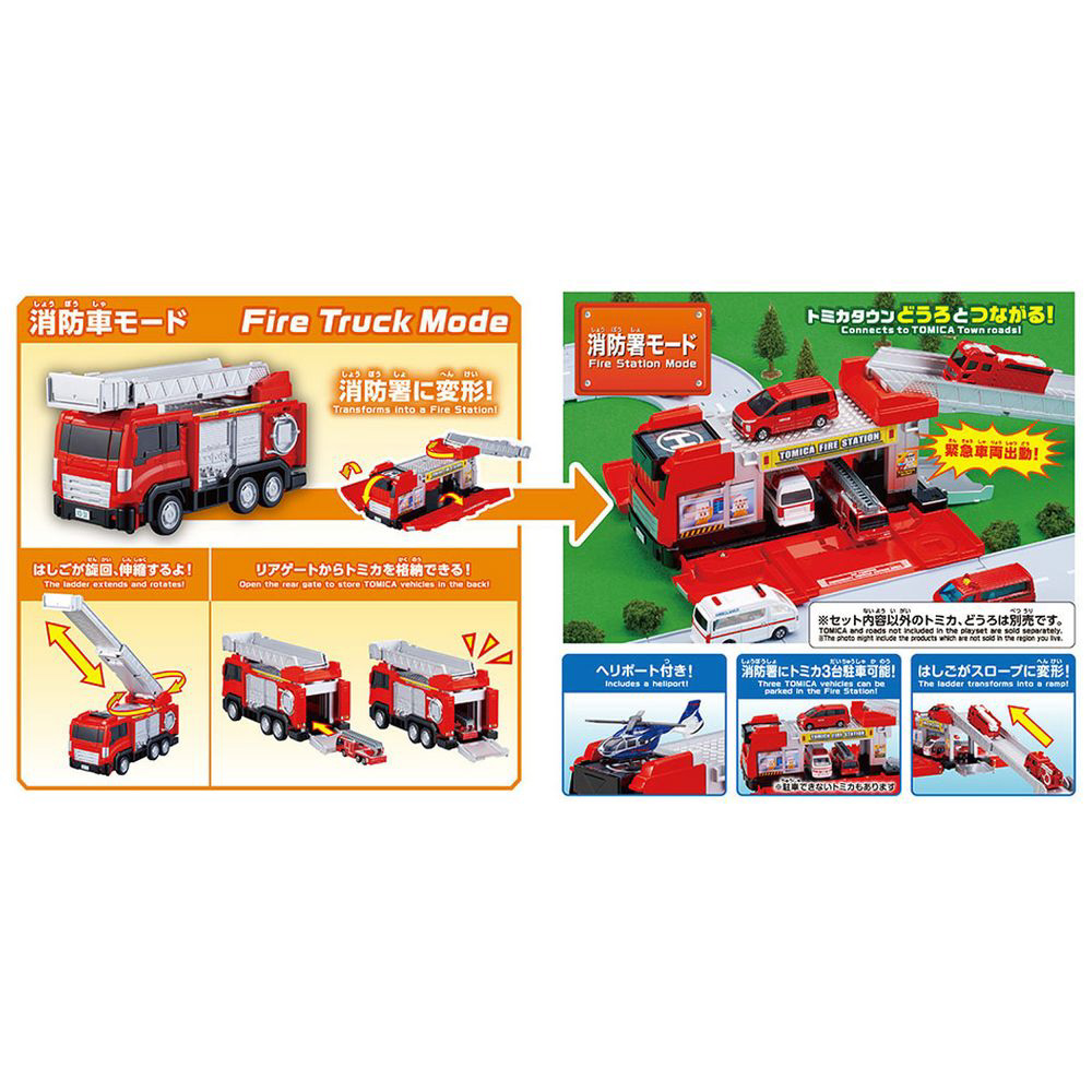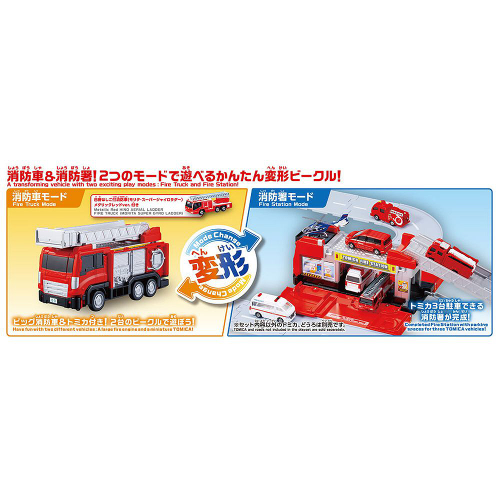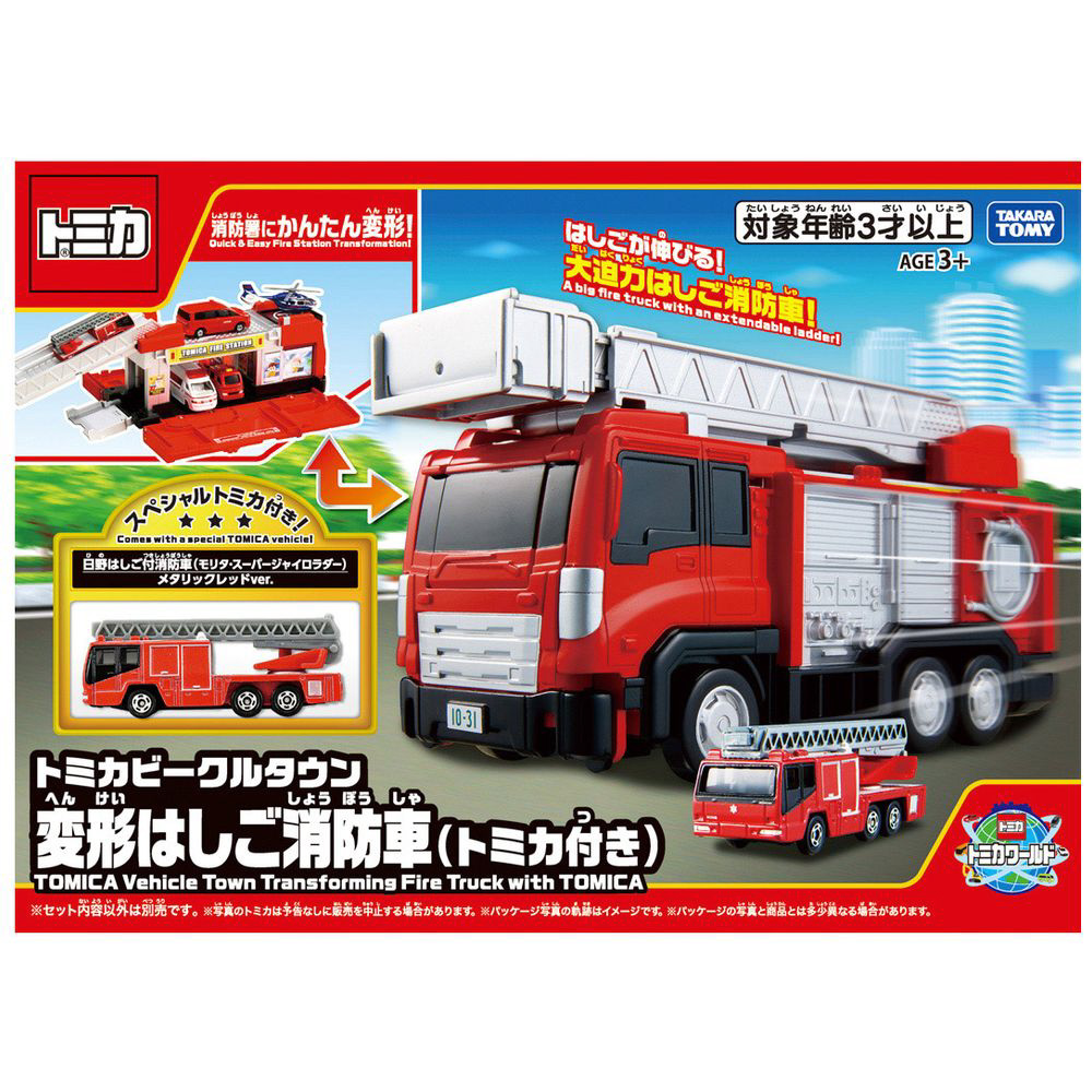 自分の手で、トミカタウンにかんたん変形!カッコいい乗り物が、カッコいい建物に早変わり!