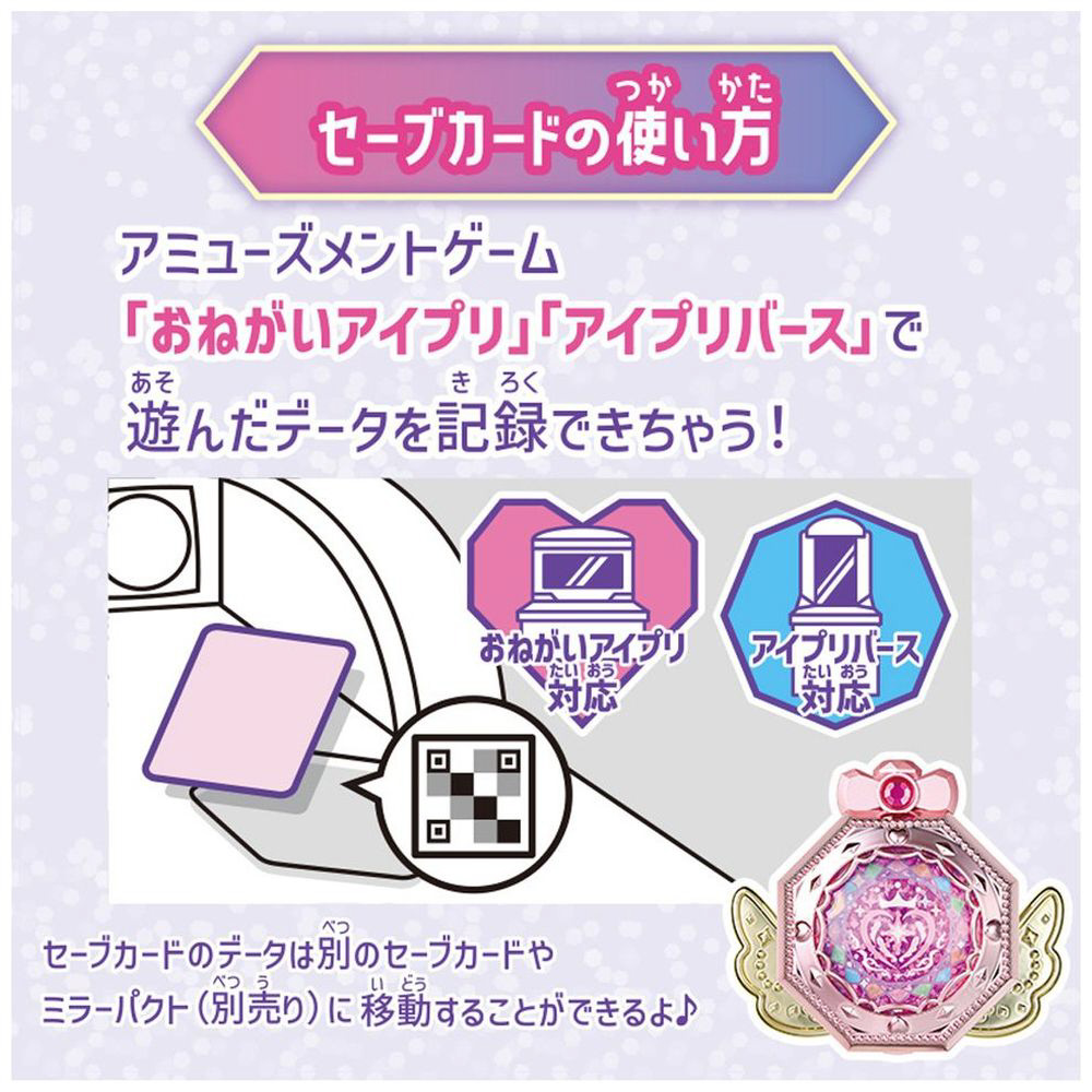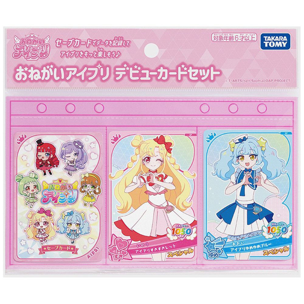スペシャルなアイプリカード2枚とアミューズメントゲーム「おねがいアイプリ」「アイプリバース」で遊んだデータを記録できるセーブカード1枚、リフィルのセット商品。
