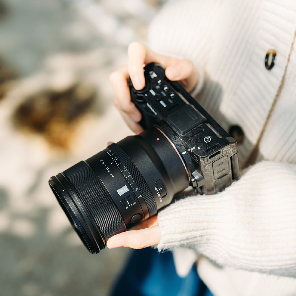 防塵・防滴構造とフルメタルボディを採用し、前玉には撥水・防汚コーティングを施すことで、屋外や過酷な環境でも信頼性の高い撮影をサポートします。クリック/デクリック切替対応の絞りリング、AF/MFスイッチ、Fnボタンを搭載し、直感的で効率的な操作性を実現。プロフェッショナルな撮影体験を提供する1本です。