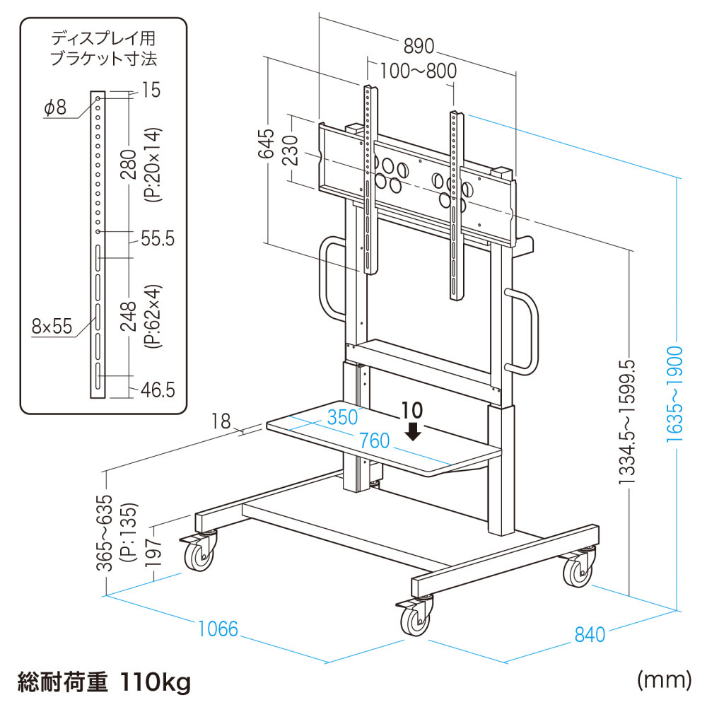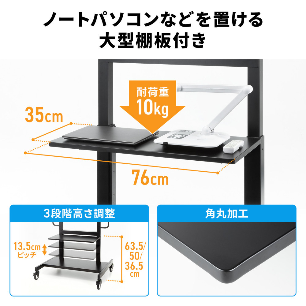 ※キャスターを装備しておりますが、ディスプレイを設置した状態での長距離の移動、移動させながらの使用を想定した構造にはなっておりません。