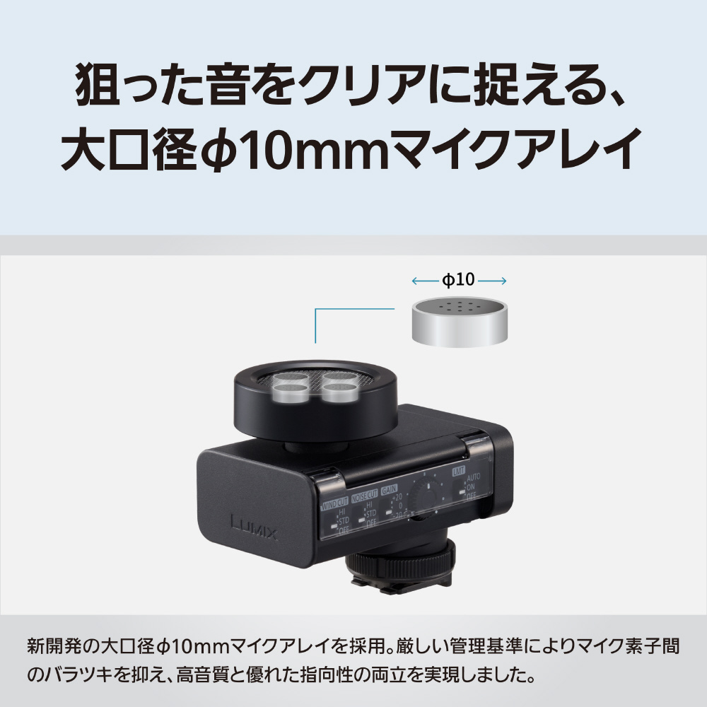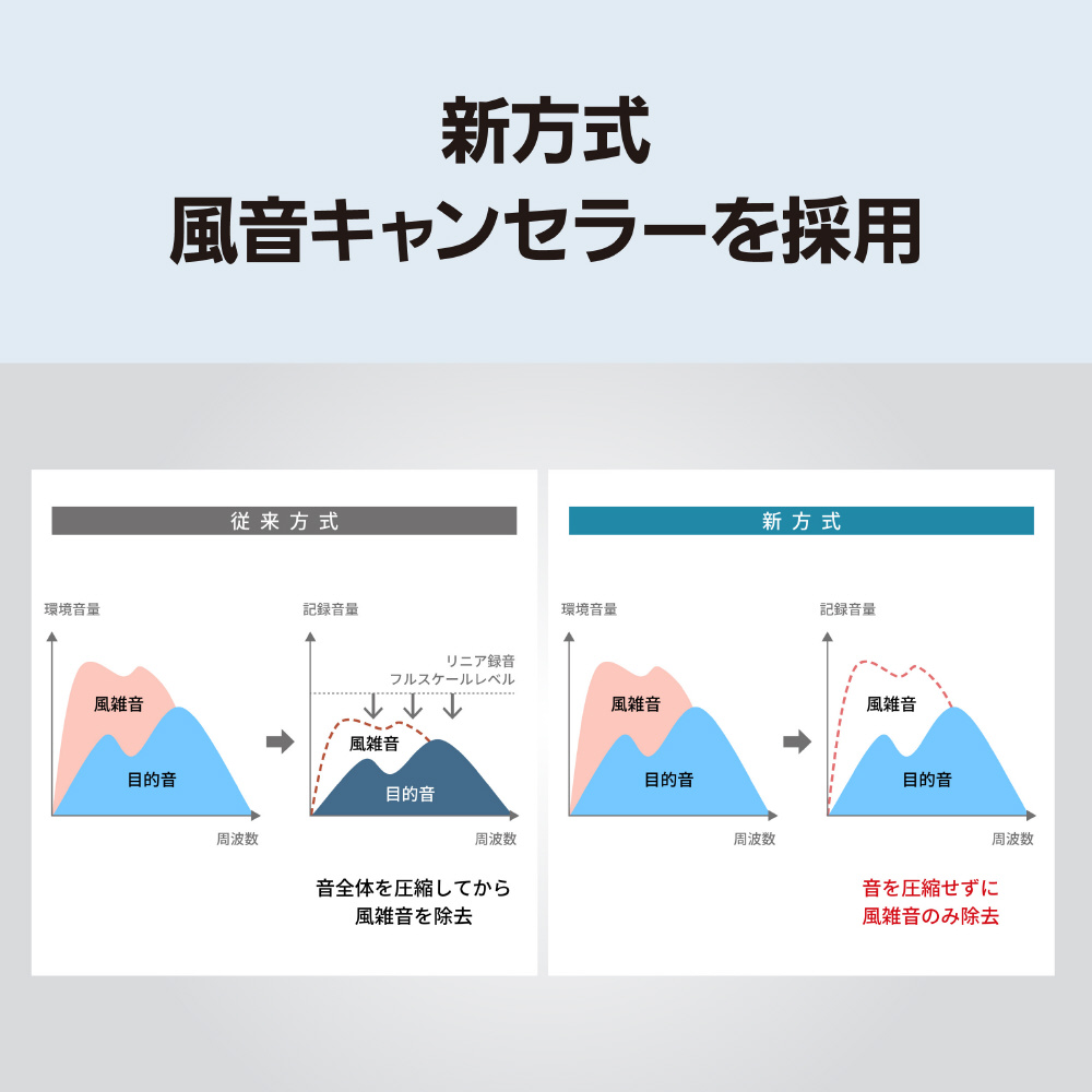 新開発マイクアレイによるクリアで臨場感のある録音が可能なことに加えて、さまざまな録音環境でノイズを抑制。シーンに応じて選べる「6つの指向性モード」により、自由度の高い、多様な録音スタイルで動画撮影をサポートします