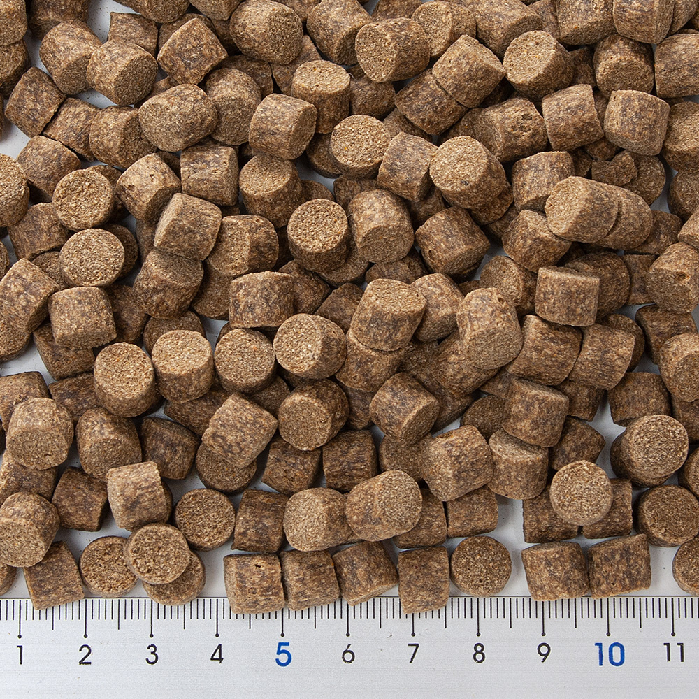 粗たん白質:36.0%以上、粗脂肪:7.0%以上、粗繊維:4.0%以下、粗灰分:14.0%以下、水分:11.0%以下