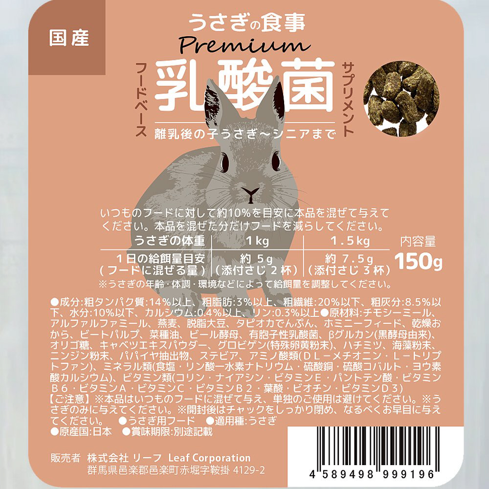 うさぎの食事プレミアム 乳酸菌サプリメント 150g
