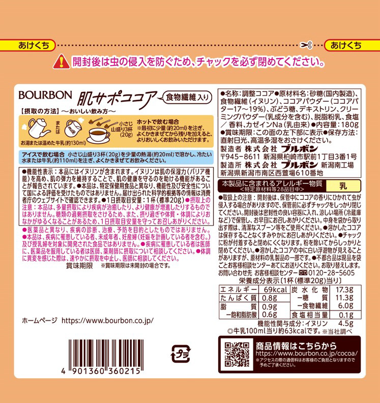機能性関与成分: 1杯(標準20g)当りイヌリン4.5g